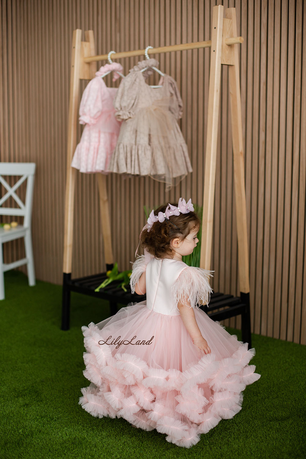 Cloud Girl Fluffy Dress in Powder with Feathers Sleeves