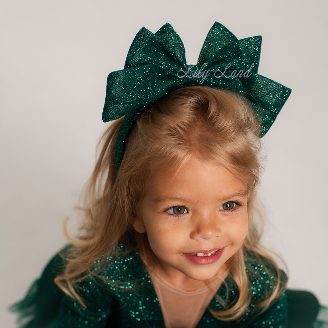 A lovely bow hair hoops a stylish addition to your look. It is beautiful and cute girl accessory. It is made of shiny emerald green glitter fabric. The bow can be made in various colors suitable for your dress, taking into account all the wishes of the buyer. Perfect for weddings, birthdays, proms, and first communions, Christmas photoshoots, these delicate bow add a touch of timeless sophistication to any outfit.