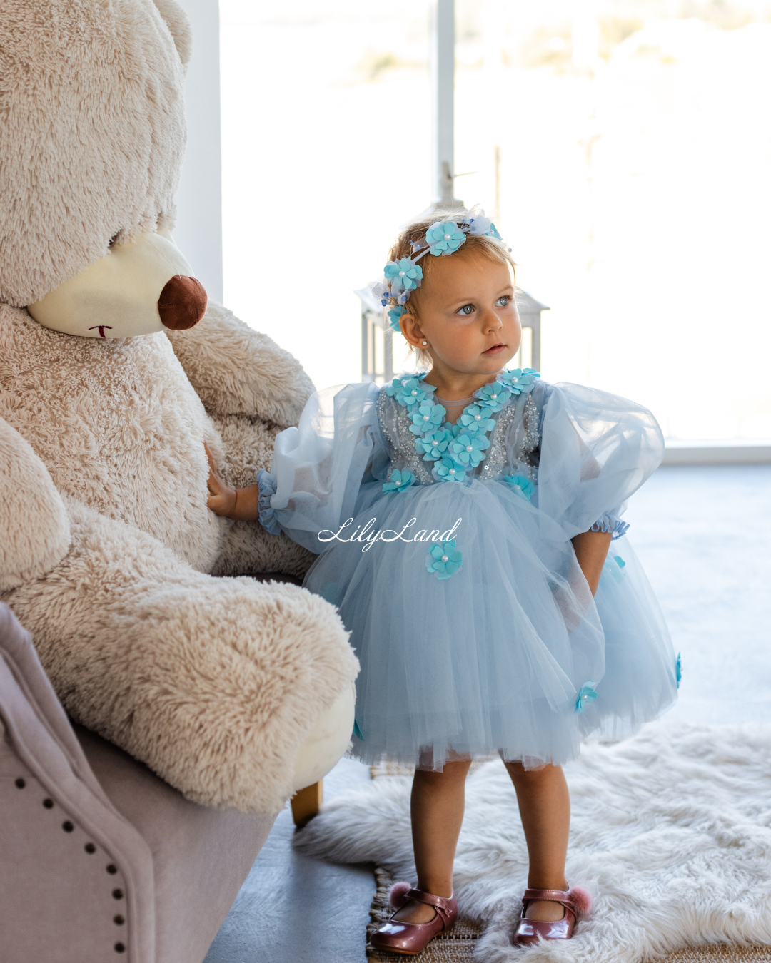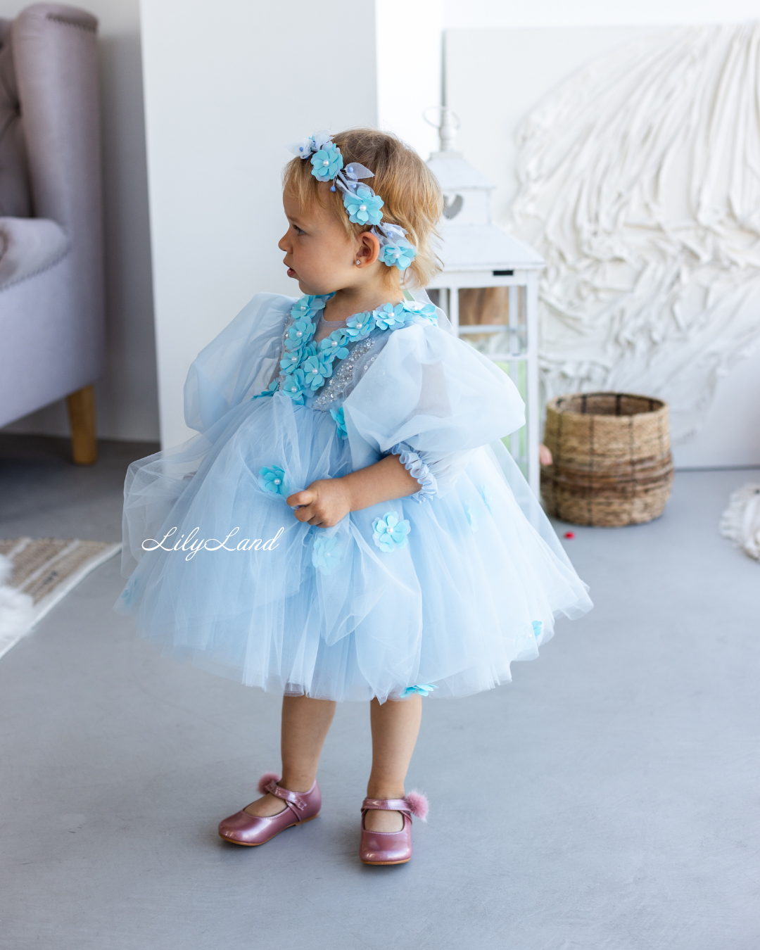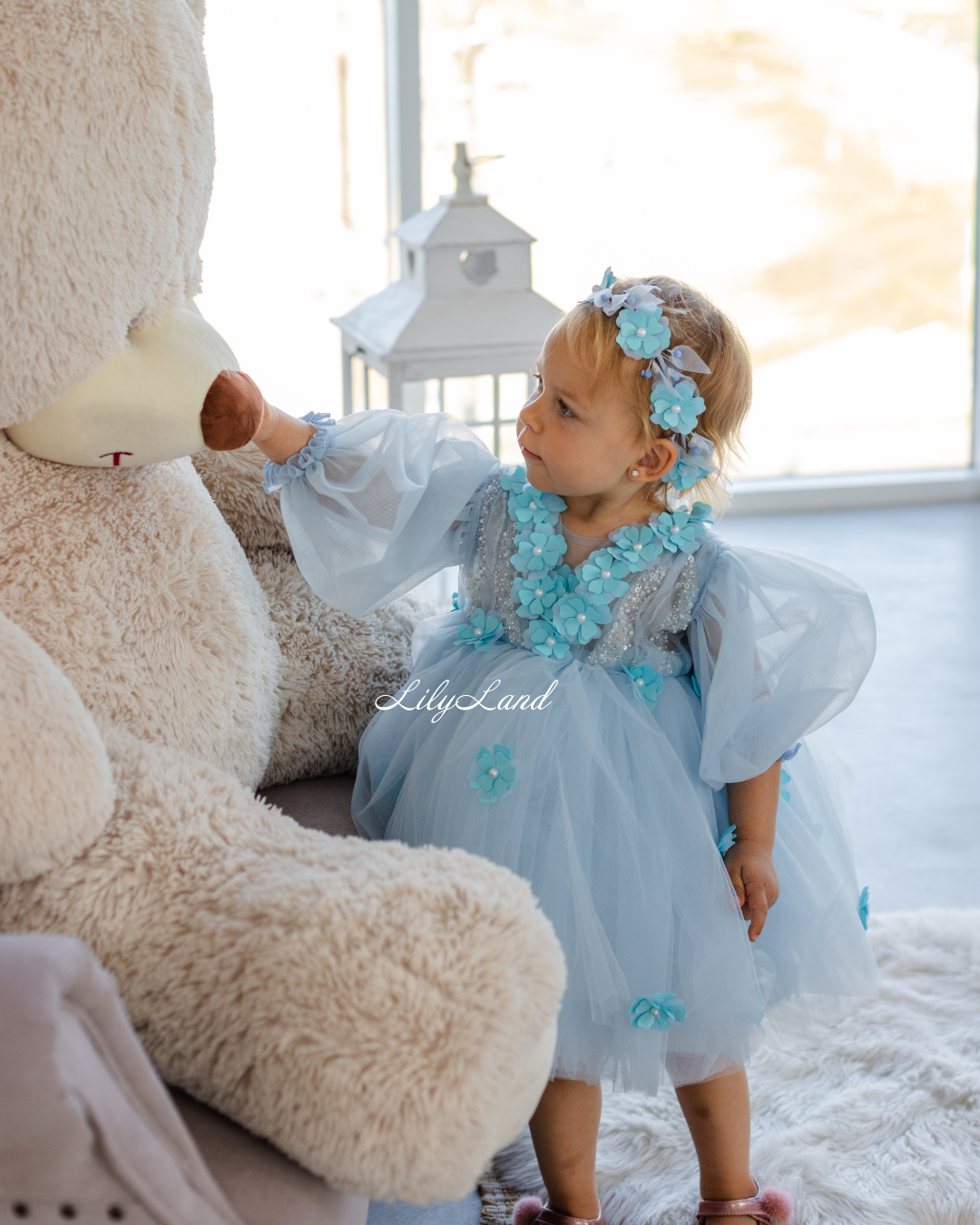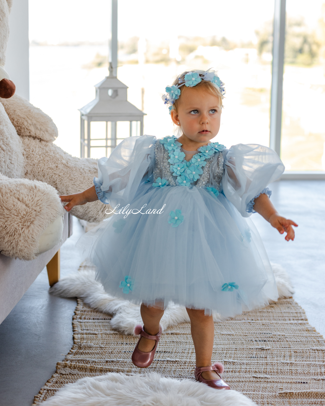 Fifi Baby Girl Dress in Sky Blue with Attached Flowers