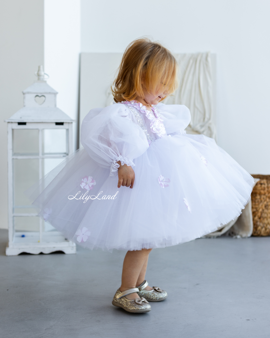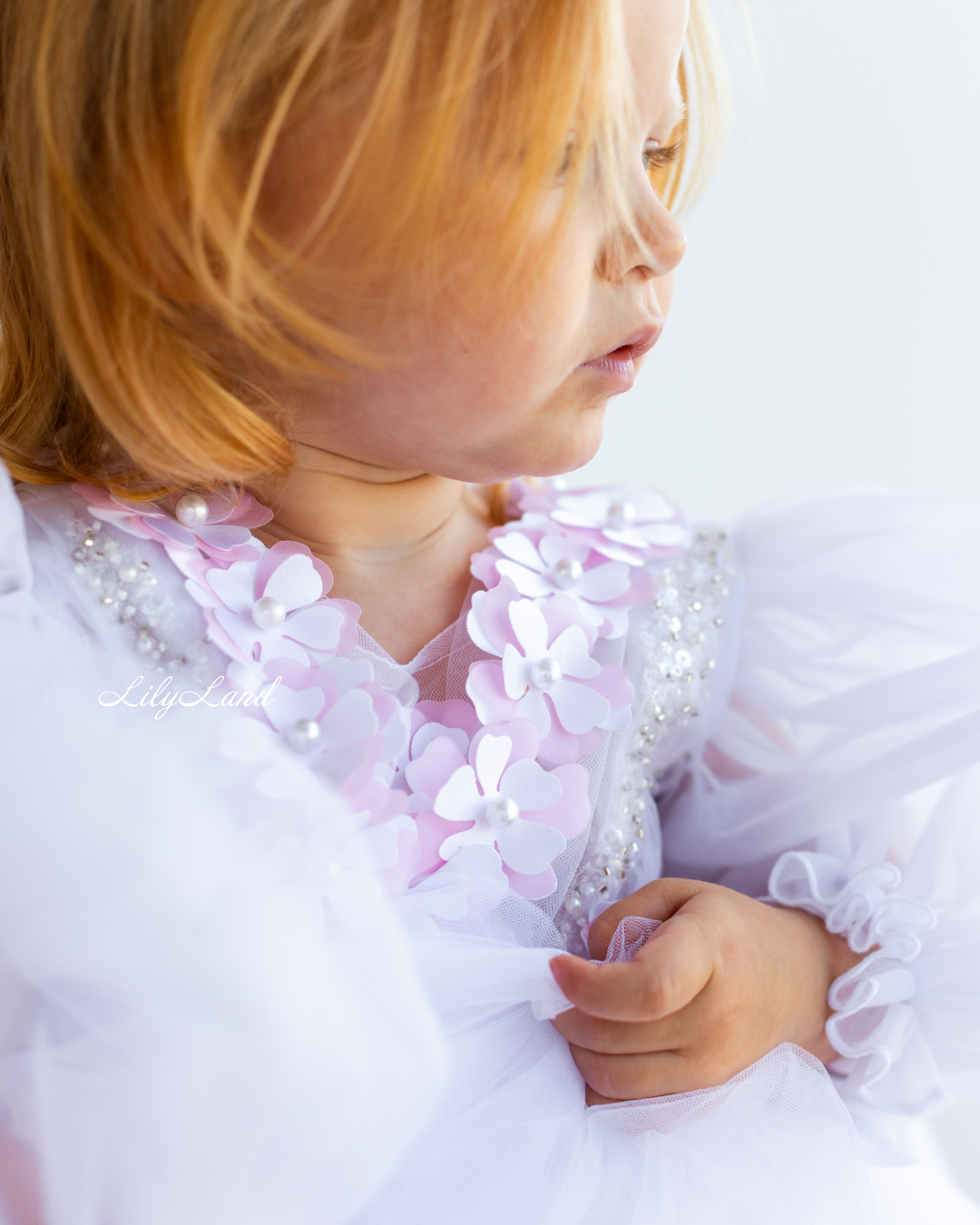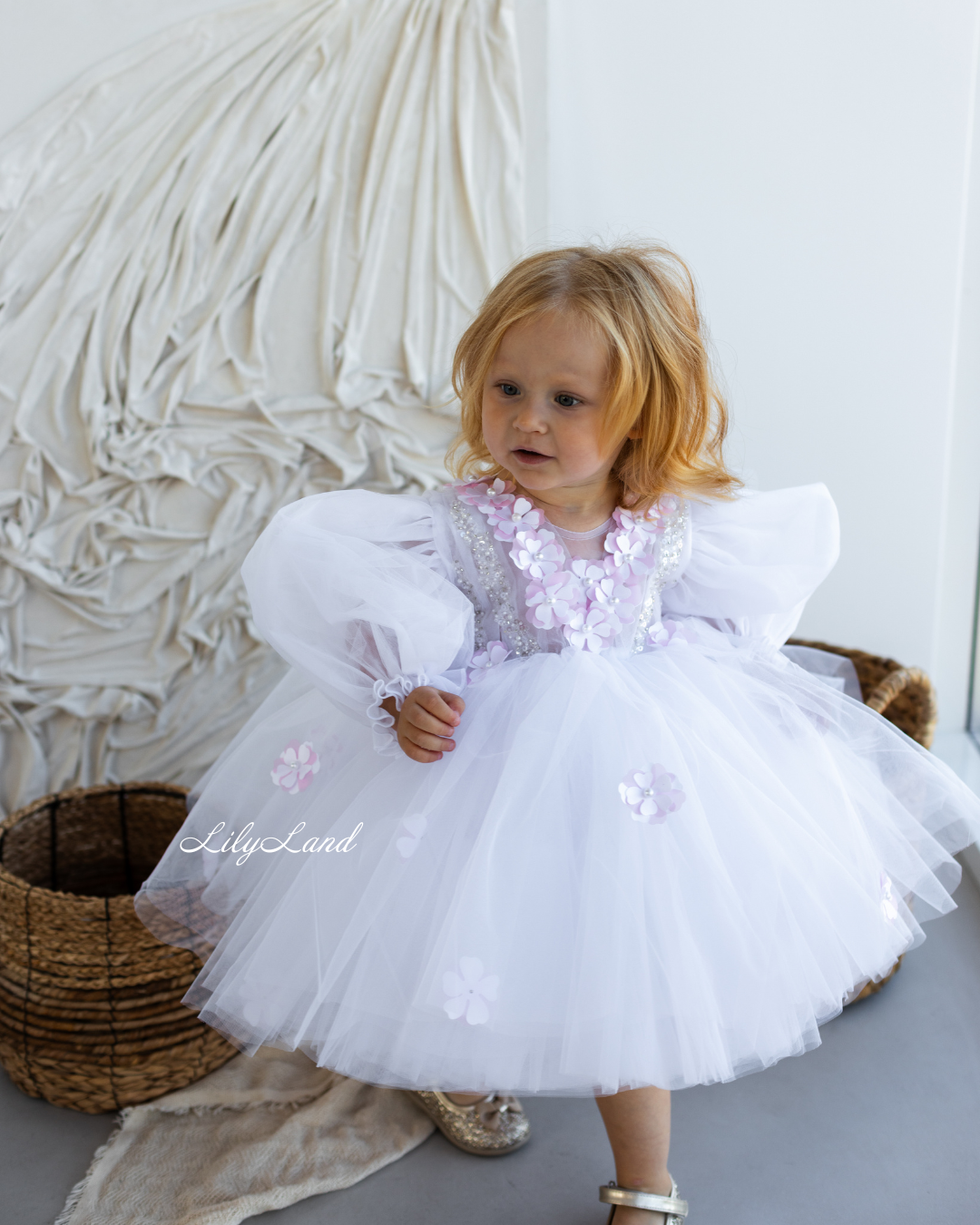 Introducing our Fifi dress from the NEW 2024 collection, now available in a stunning White color! This enchanting dress features a top beautifully decorated with attached fuchsia flowers, pearls, beads, and sequins, adding a touch of glamour and elegance. Made with tulle, this versatile dress is perfect for a variety of celebrations, including Christmas, birthday parties, weddings, flower girl or junior bridesmaid roles, proms, photoshoots, Valentine's Day, dances, elegant evenings, and more. Customize it in different colors and sizes to suit your preferences, and let your little one shine in this exquisite attire.