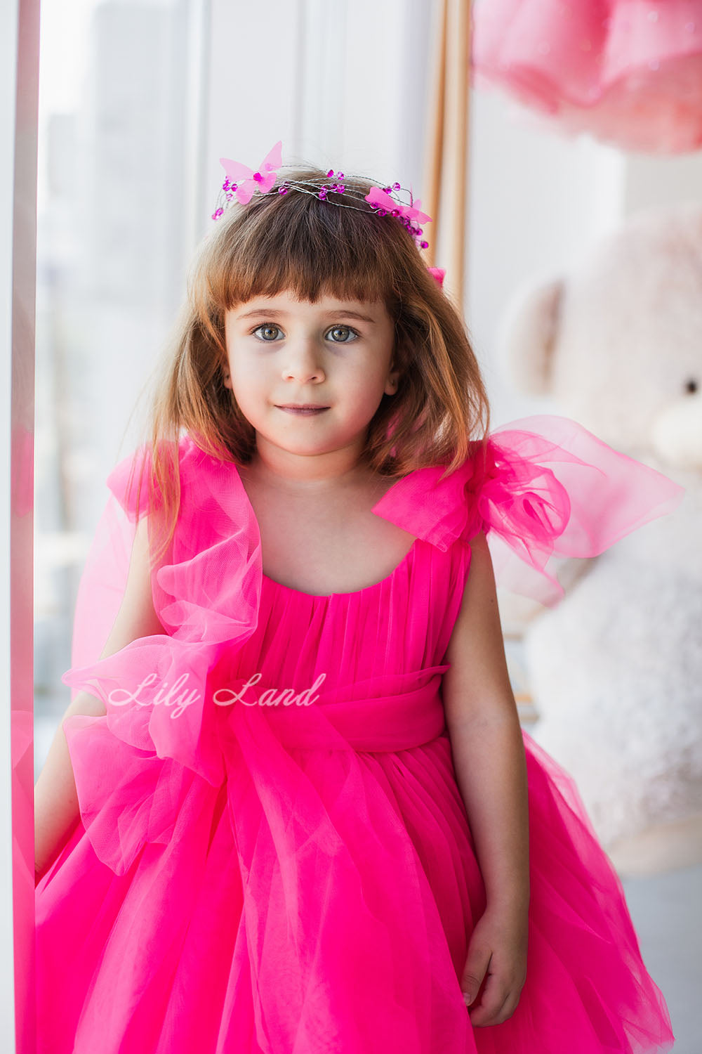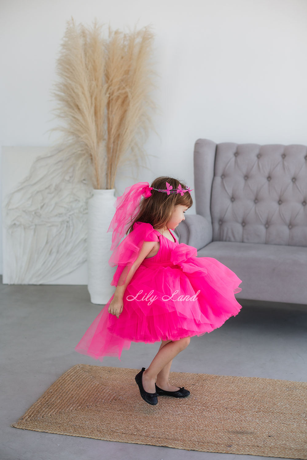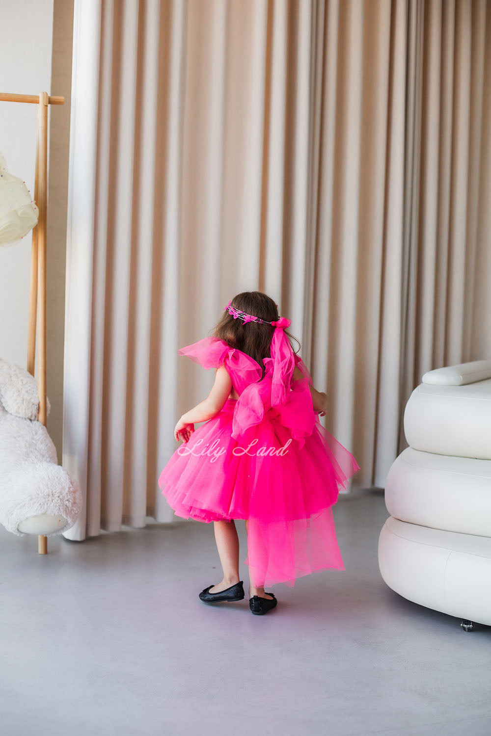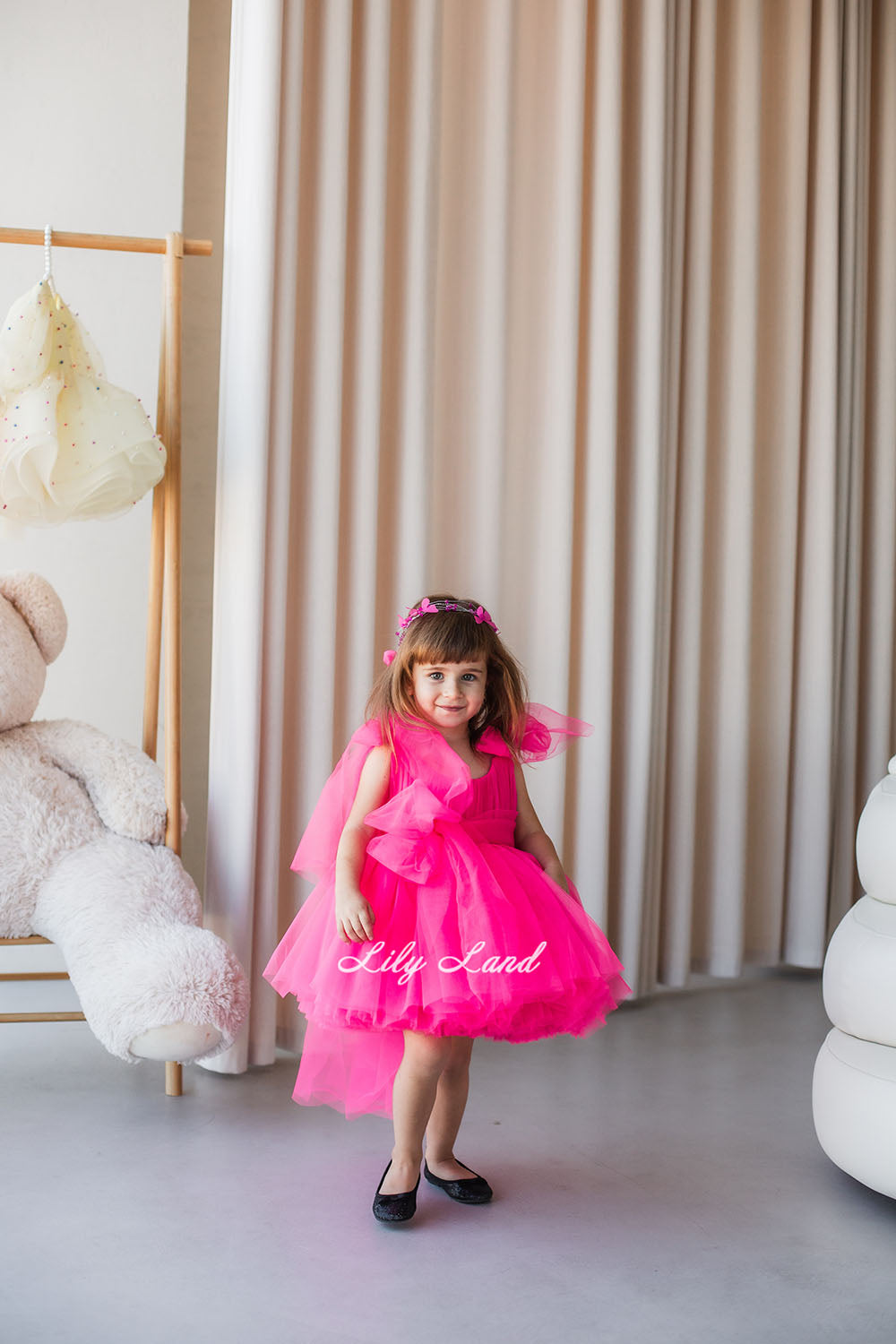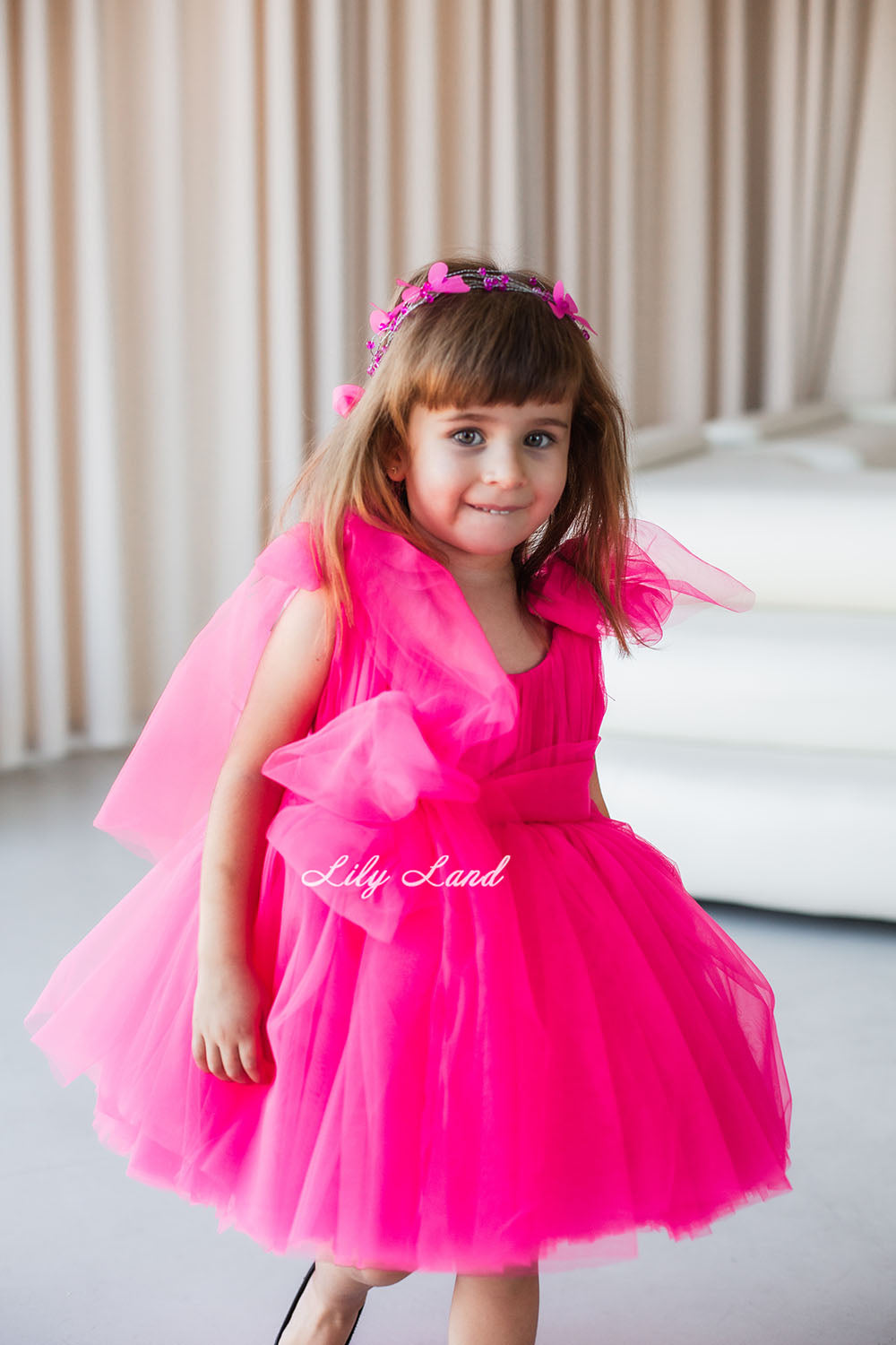 Introducing our lovely Frida dress, in hot pink perfect for your little princess's special moments. This dress is pure elegance, with its satin top and draped tulle, giving it sophistication. Adorned with tulle bows on the shoulders and front and back, it's ideal for birthdays, holidays, or any significant event. Whether it's Christmas, birthdays, weddings, or proms, this dress fits the bill. Order now and let your little princess shine in this beautiful outfit.