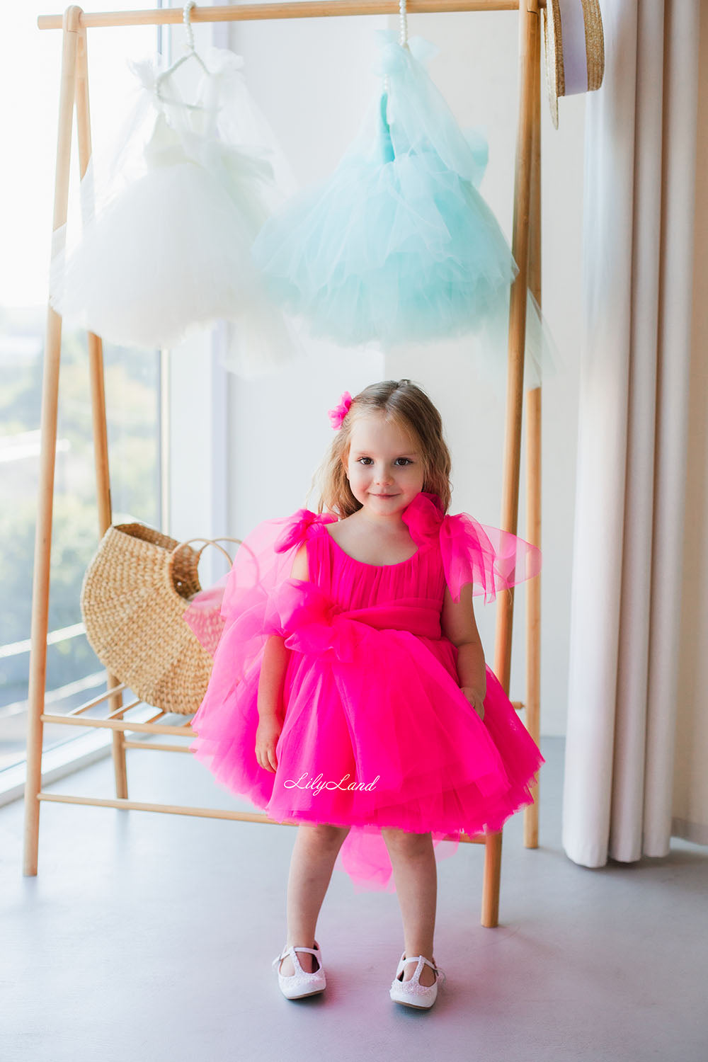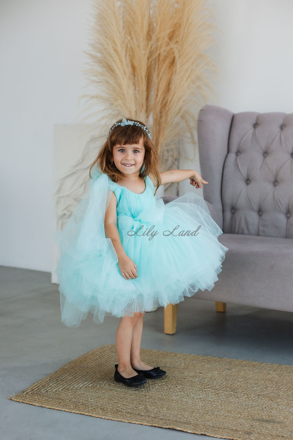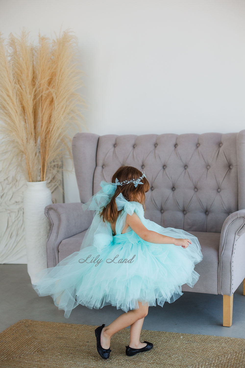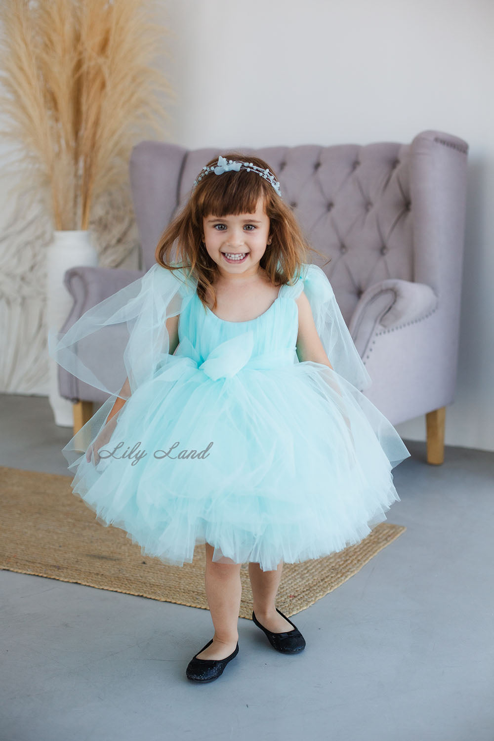 Looking for the perfect dress for your little princess's special occasions? Introducing our fabulous Frida dress! This dress exudes elegance and charm with its satin top and draped tulle, offering sophistication. Decorated with tulle bows on the shoulders and front and back, it's just right for birthdays, holidays, or any significant occasion. From Christmas to weddings, flower girl roles to proms, this dress suits them all. And guess what? It's available in a delightful mint color! You can even tailor it in different shades and sizes to match your preferences.