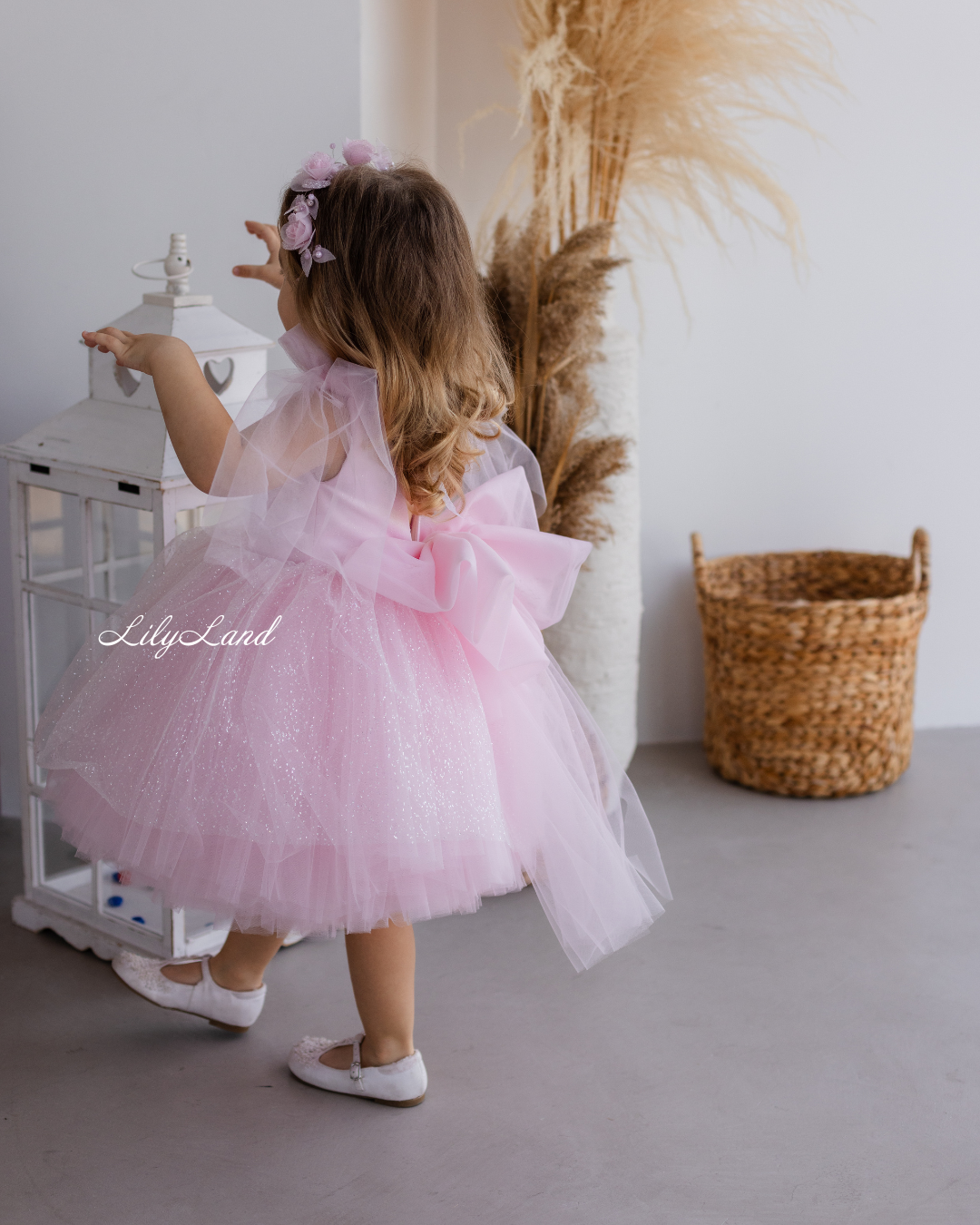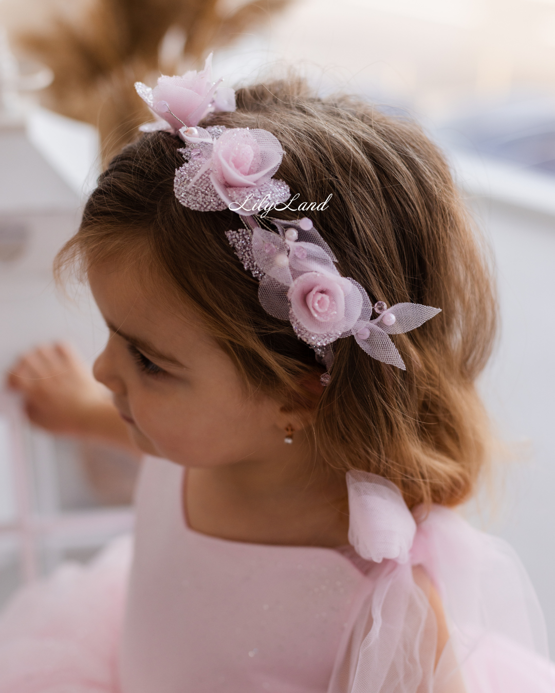 Girl Hair Accessories with Roses and Glitter Leaves in Light Pink