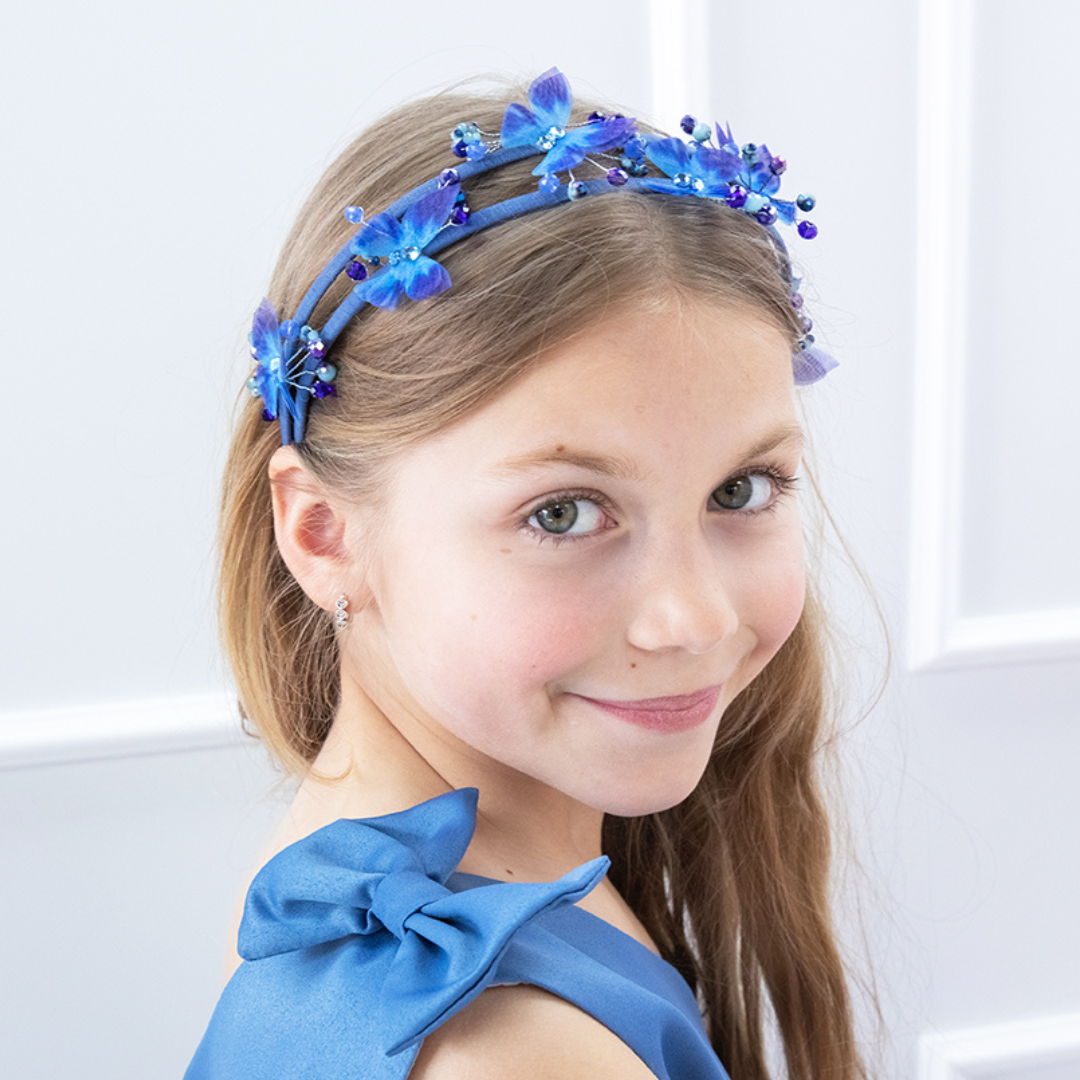 A cute headband with butterflies will be a great addition to your holiday look. The headband with butterflies is made by tulle and decorated with beads. It can be made in different colors, which are very well combined with any outfits of the girl, taking into account all the wishes of the buyer.