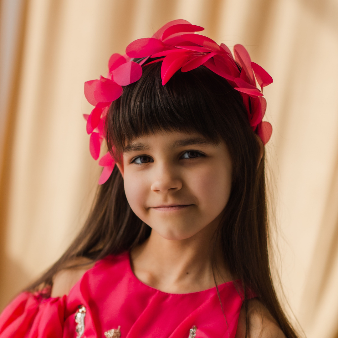 Our elegant blush pink headband with voluminous leaves is perfect for your daughter's style at any celebration. Ideal for Christmas, birthdays, weddings, parties, photography, Valentine's Day, dances, evenings, flower girl dresses, festivals, and dress-up adventures. Customizable to match any outfit.