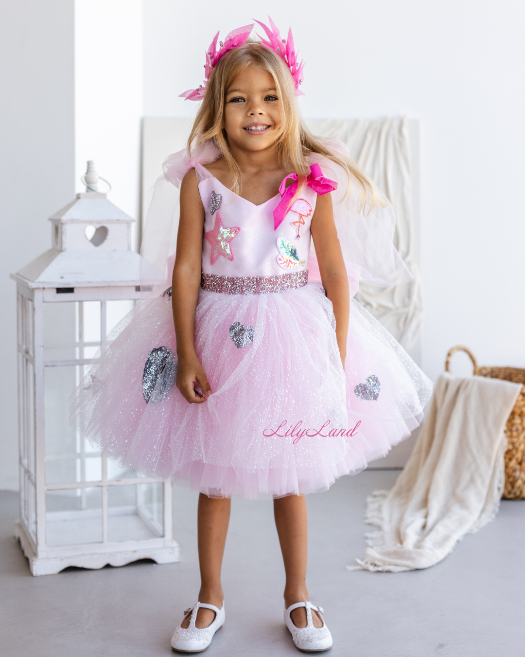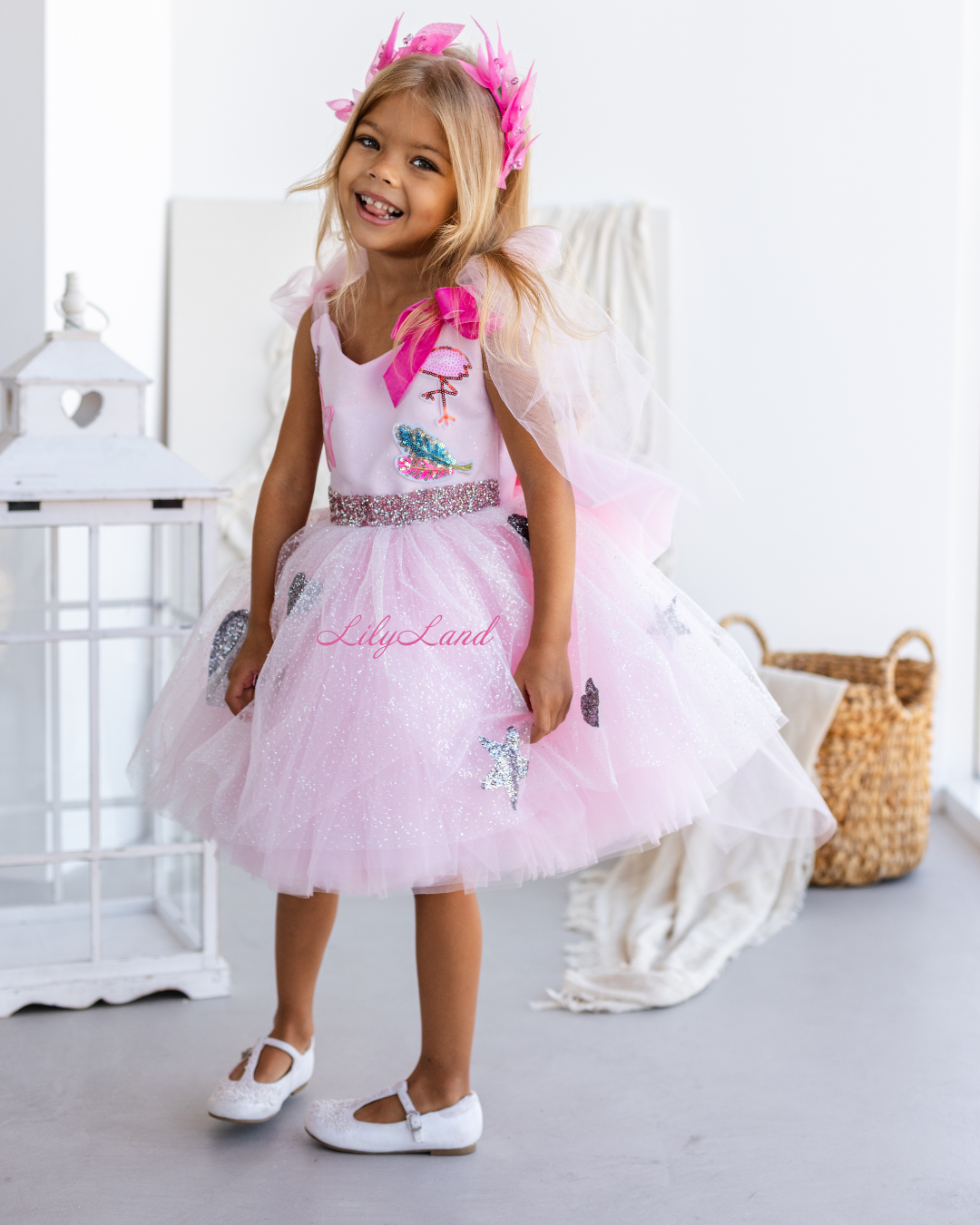 Judy Girl Dress - Flamingo Queen Theme Dress in Pink