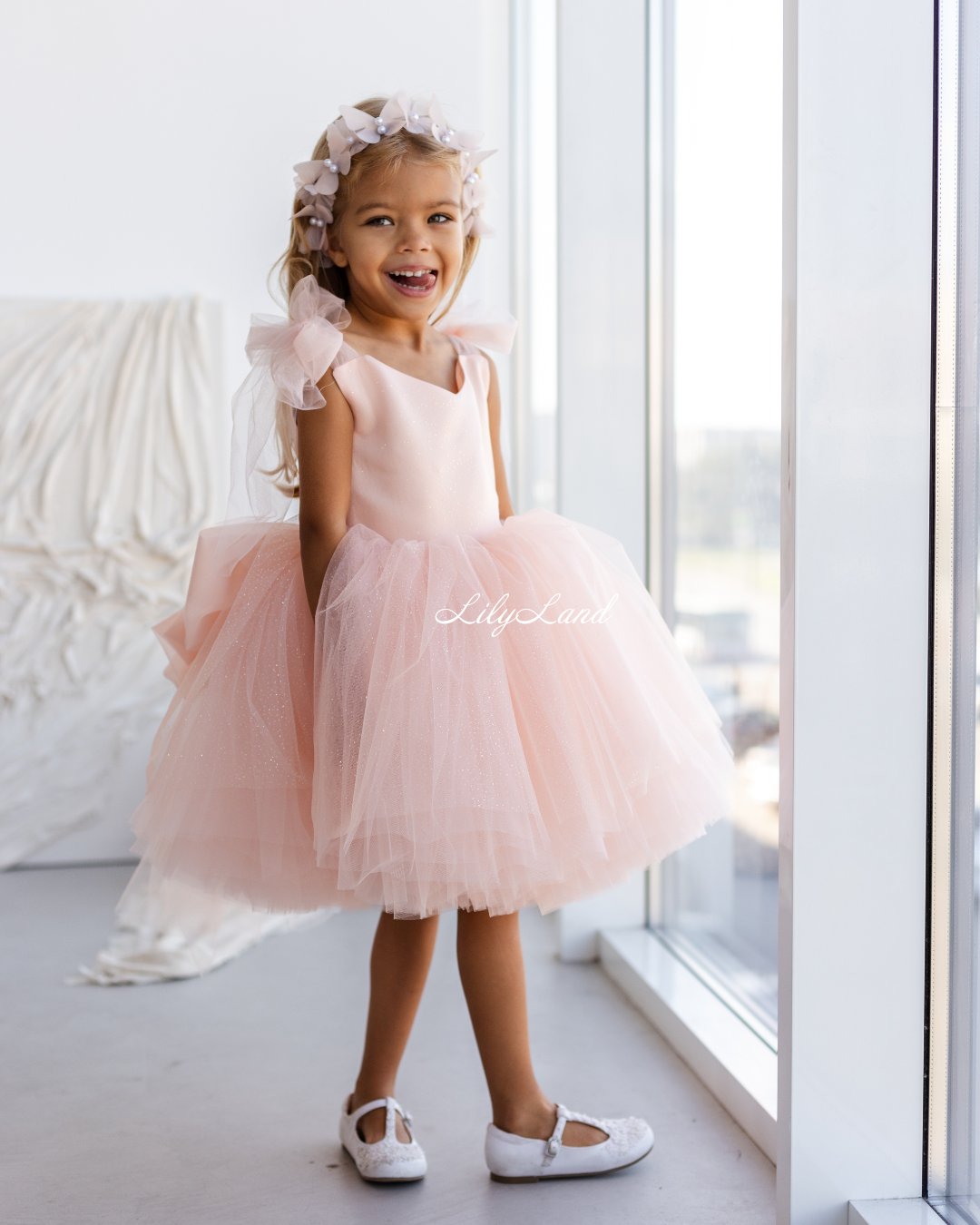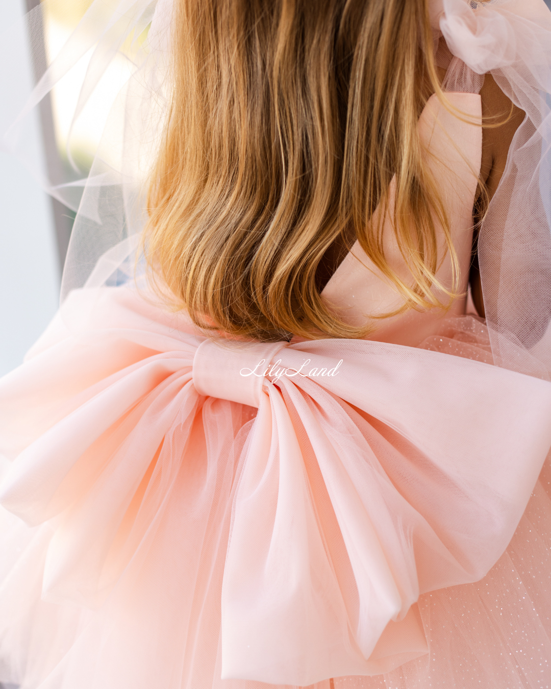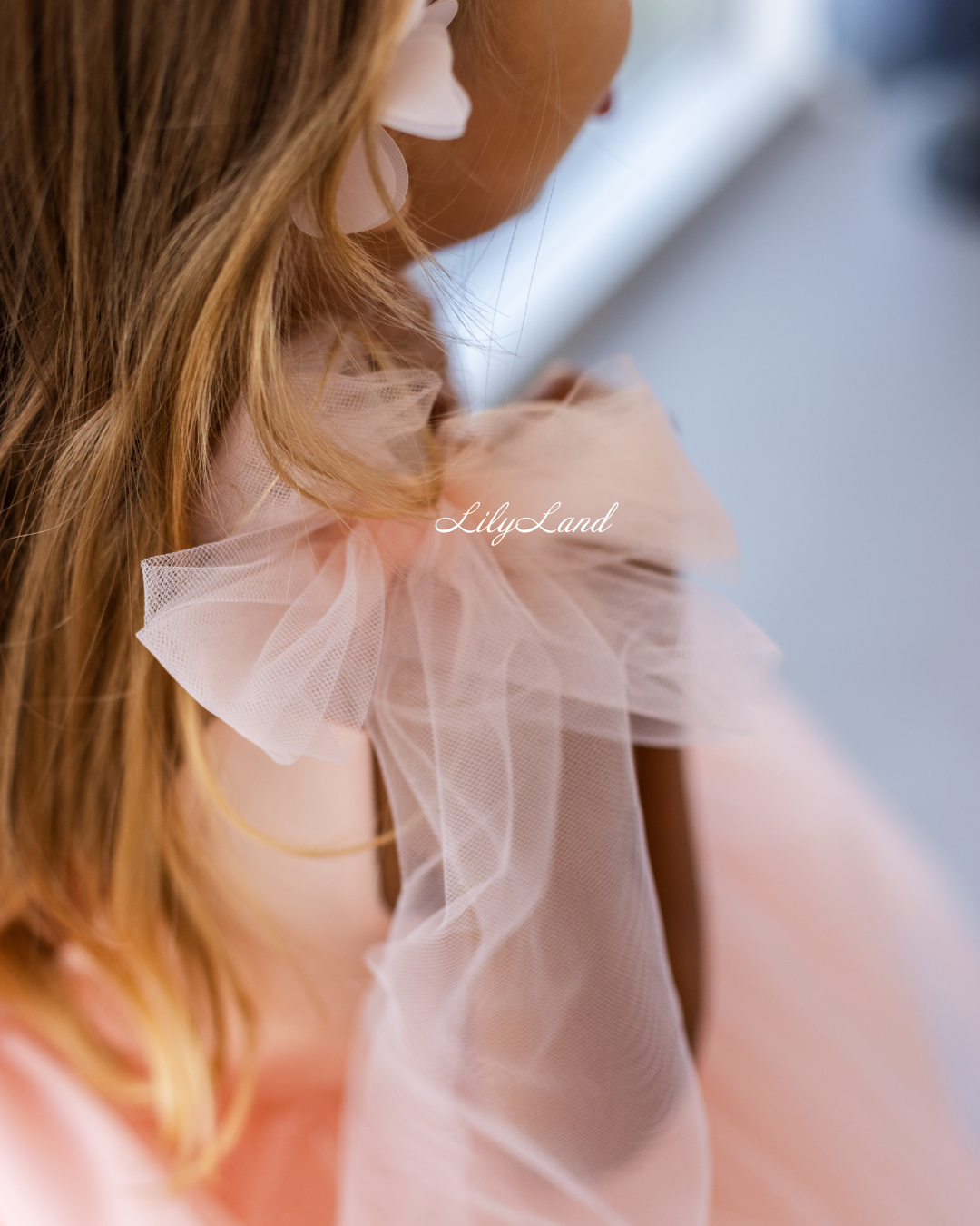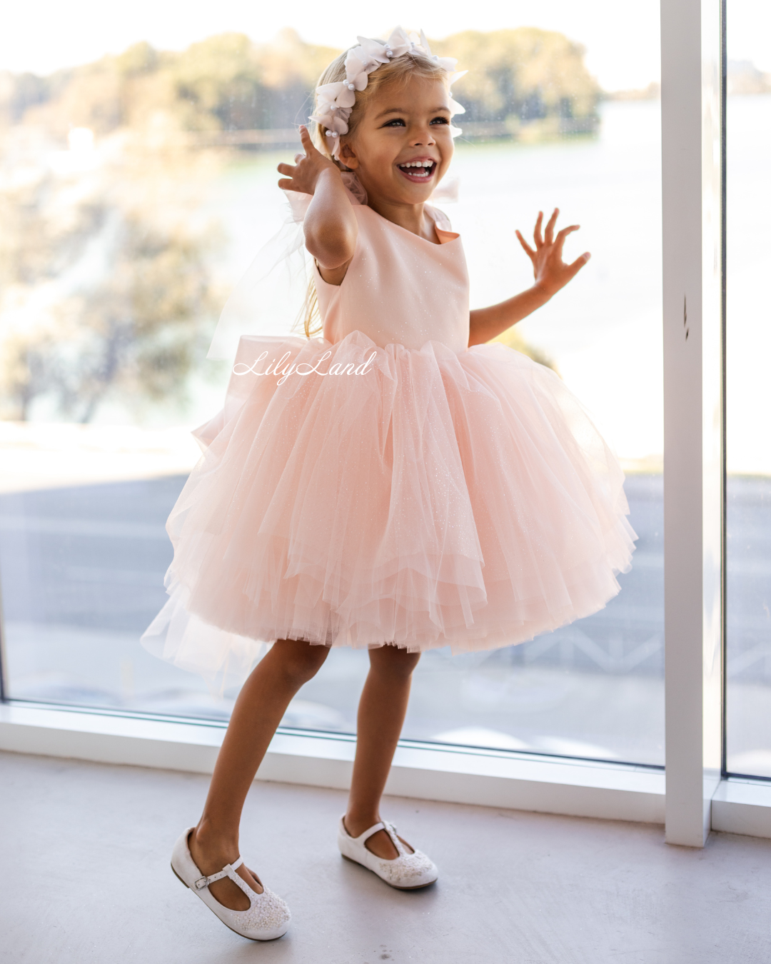 Our Judy dress in a stunning peach color, made with sparkling tulle. Whether it's a birthday, holiday, or any significant event, this versatile dress is perfect for a variety of celebrations, including Christmas, birthdays, weddings, flower girl or junior bridesmaid roles, proms, photoshoots, Valentine's Day, dances, elegant evenings, and more. Customize it in different colors and sizes to suit your preferences, and let your little one shine in this exquisite attire.
