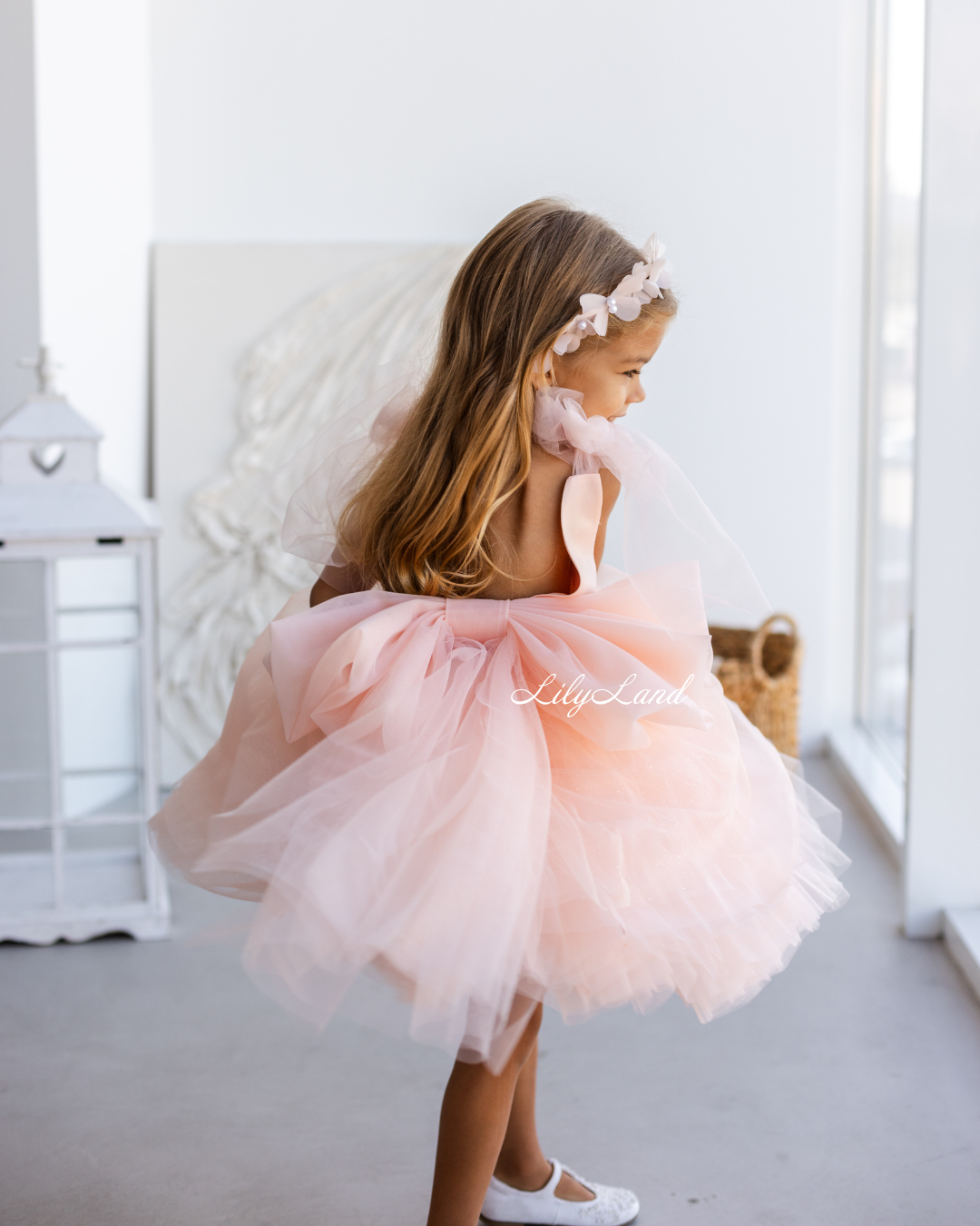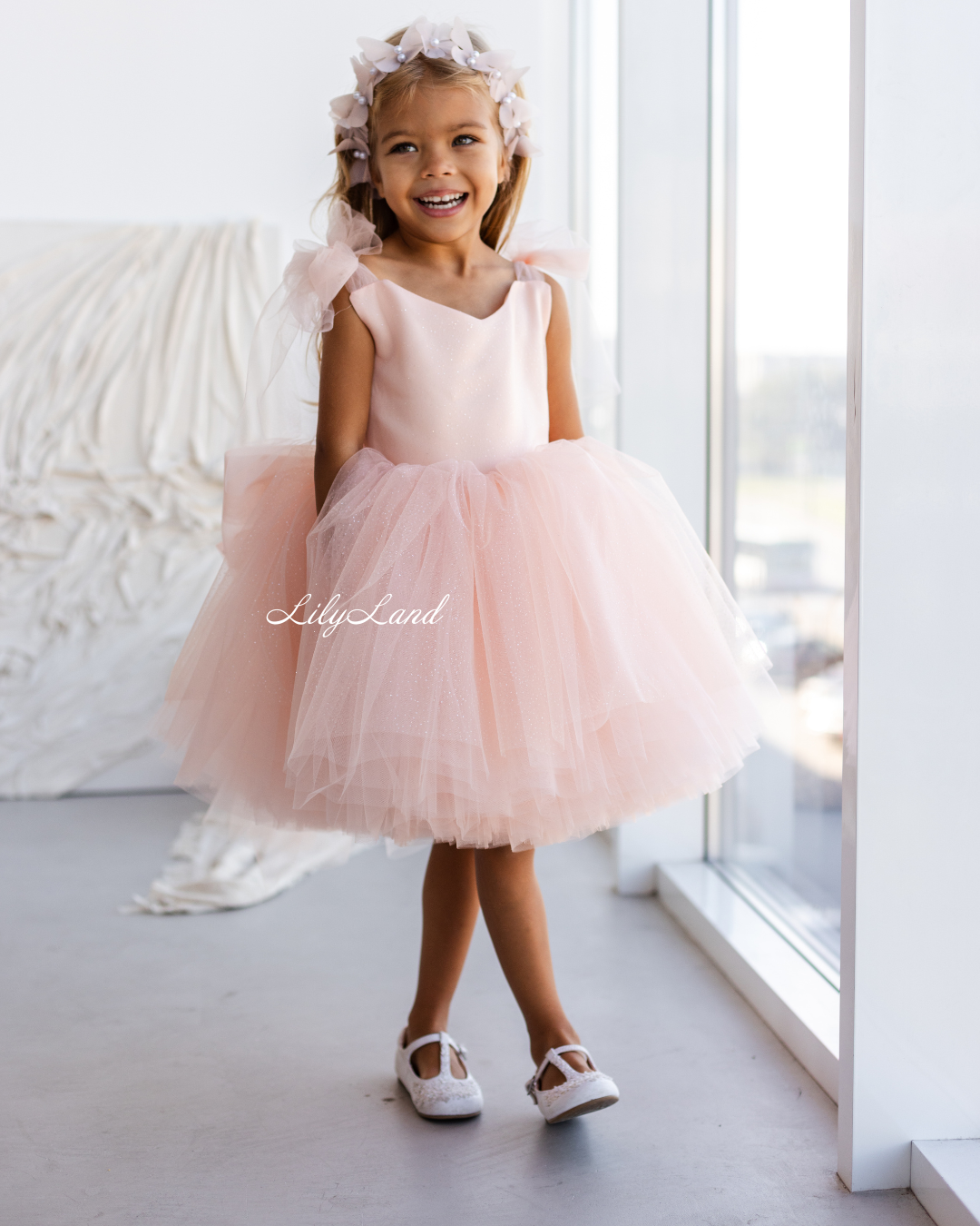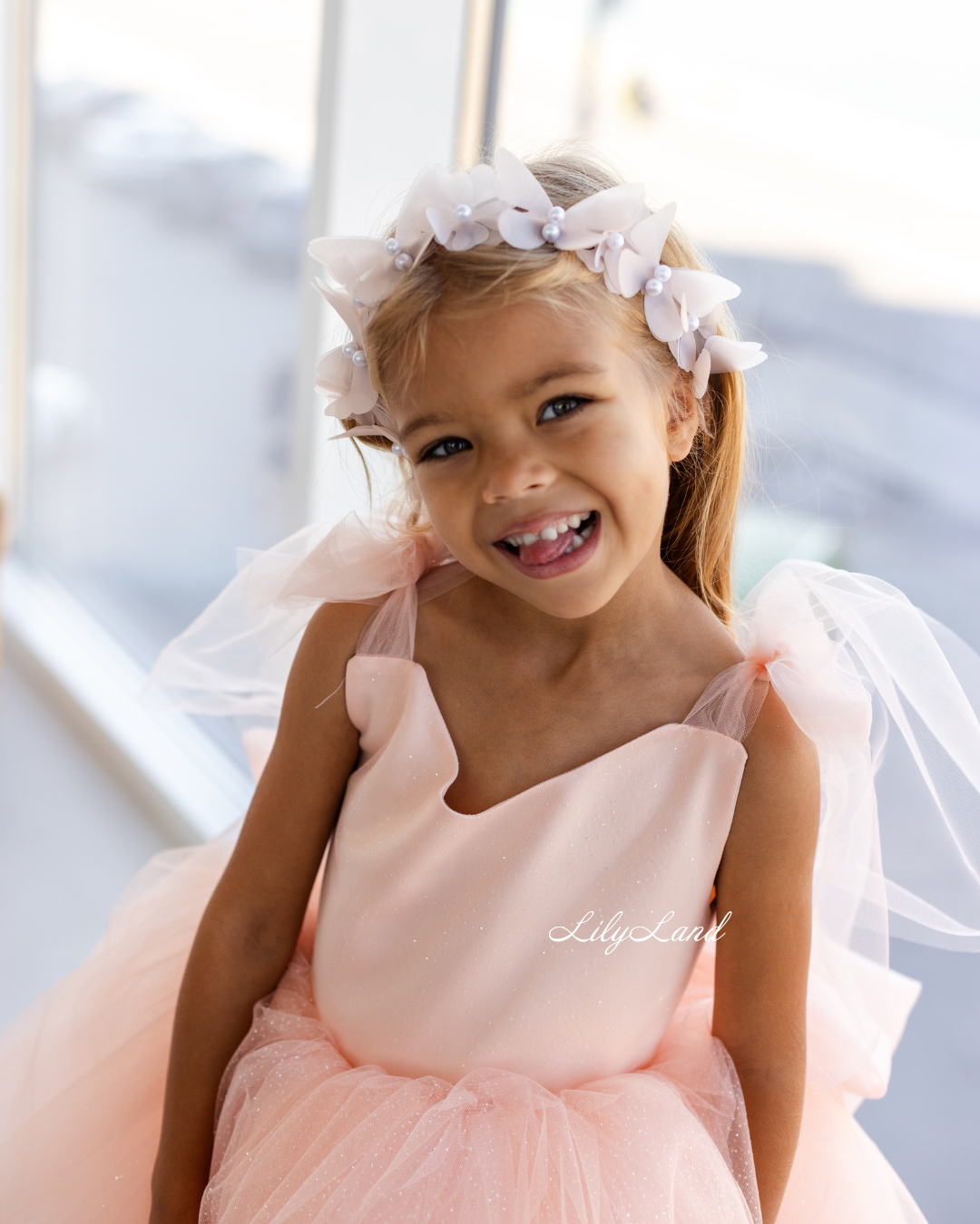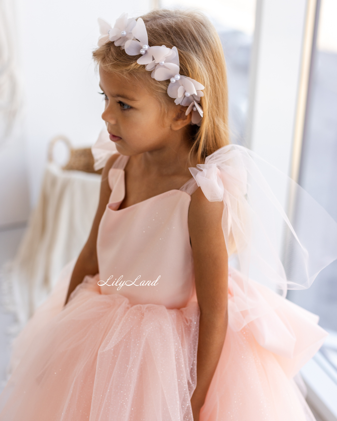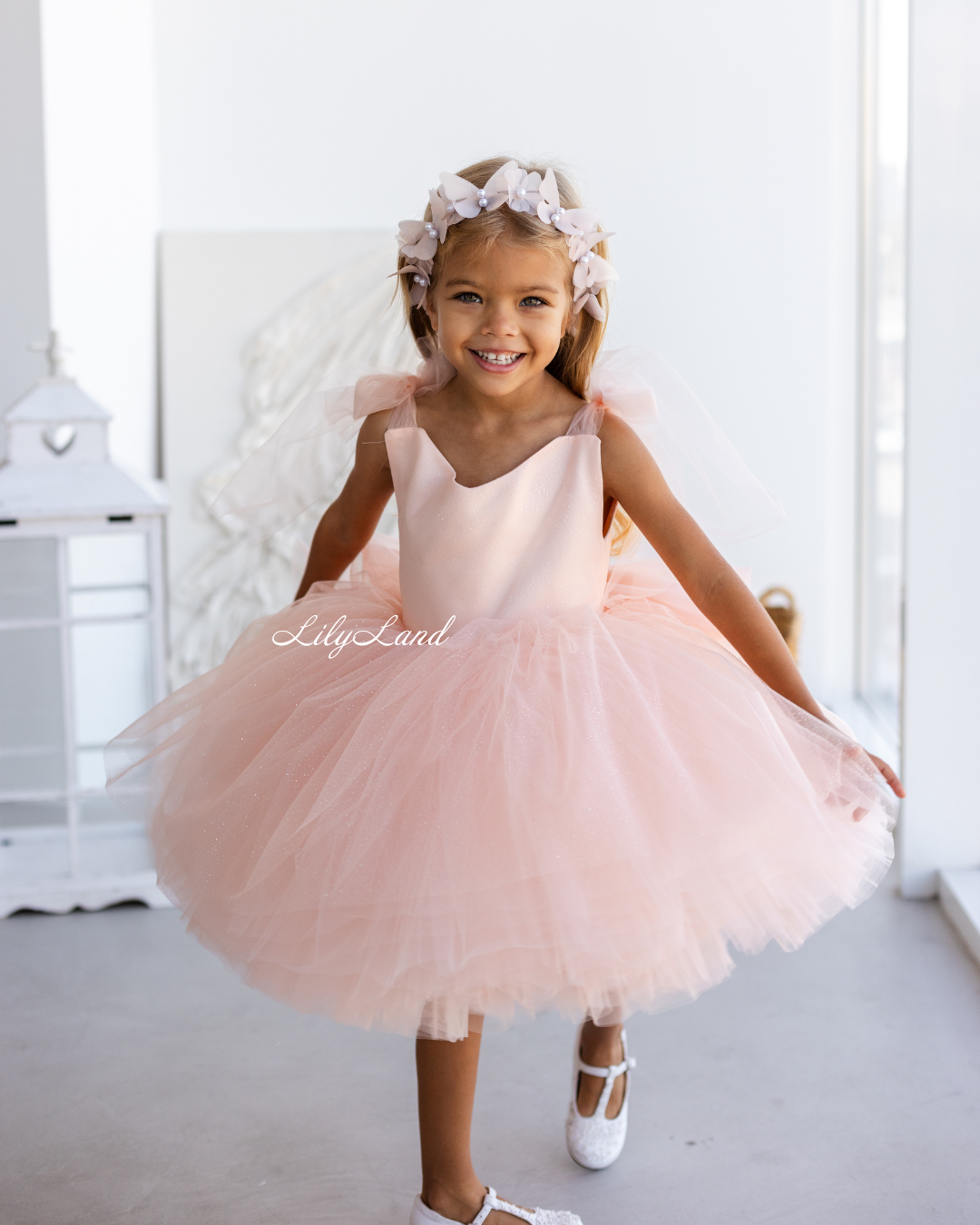 Our Judy dress in a stunning peach color, made with sparkling tulle. Whether it's a birthday, holiday, or any significant event, this versatile dress is perfect for a variety of celebrations, including Christmas, birthdays, weddings, flower girl or junior bridesmaid roles, proms, photoshoots, Valentine's Day, dances, elegant evenings, and more. Customize it in different colors and sizes to suit your preferences, and let your little one shine in this exquisite attire.