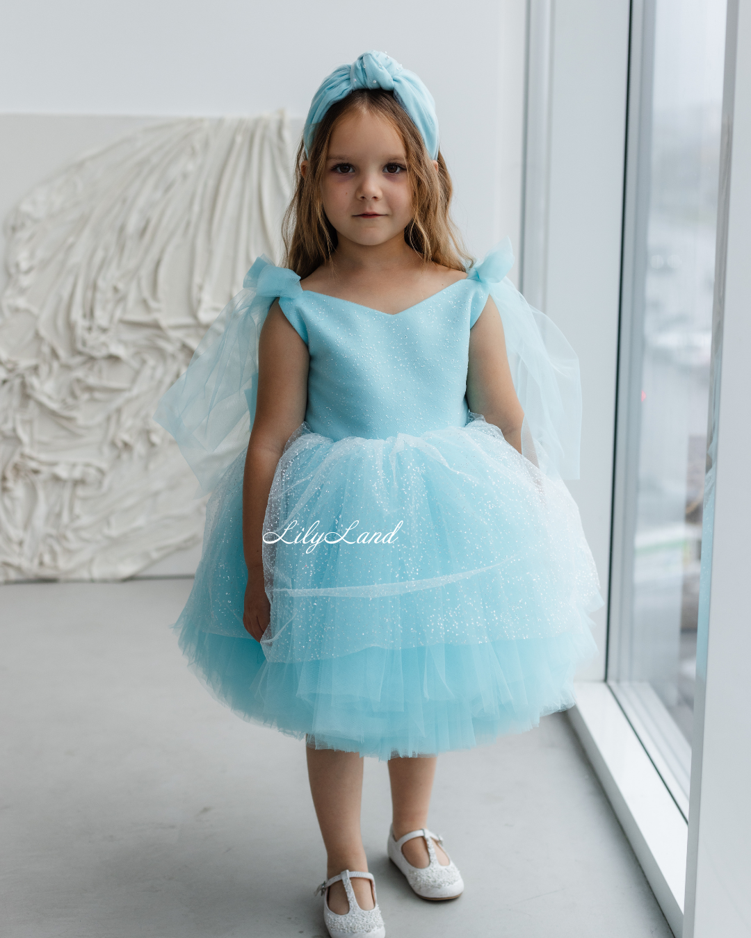 Our Judy dress in a stunning turquoise color, made with sparkling tulle. Whether it's a birthday, holiday, or any significant event, this versatile dress is perfect for a variety of celebrations, including Christmas, birthdays, weddings, flower girl or junior bridesmaid roles, proms, photoshoots, Valentine's Day, dances, elegant evenings, and more. Customize it in different colors and sizes to suit your preferences, and let your little one shine in this exquisite attire.