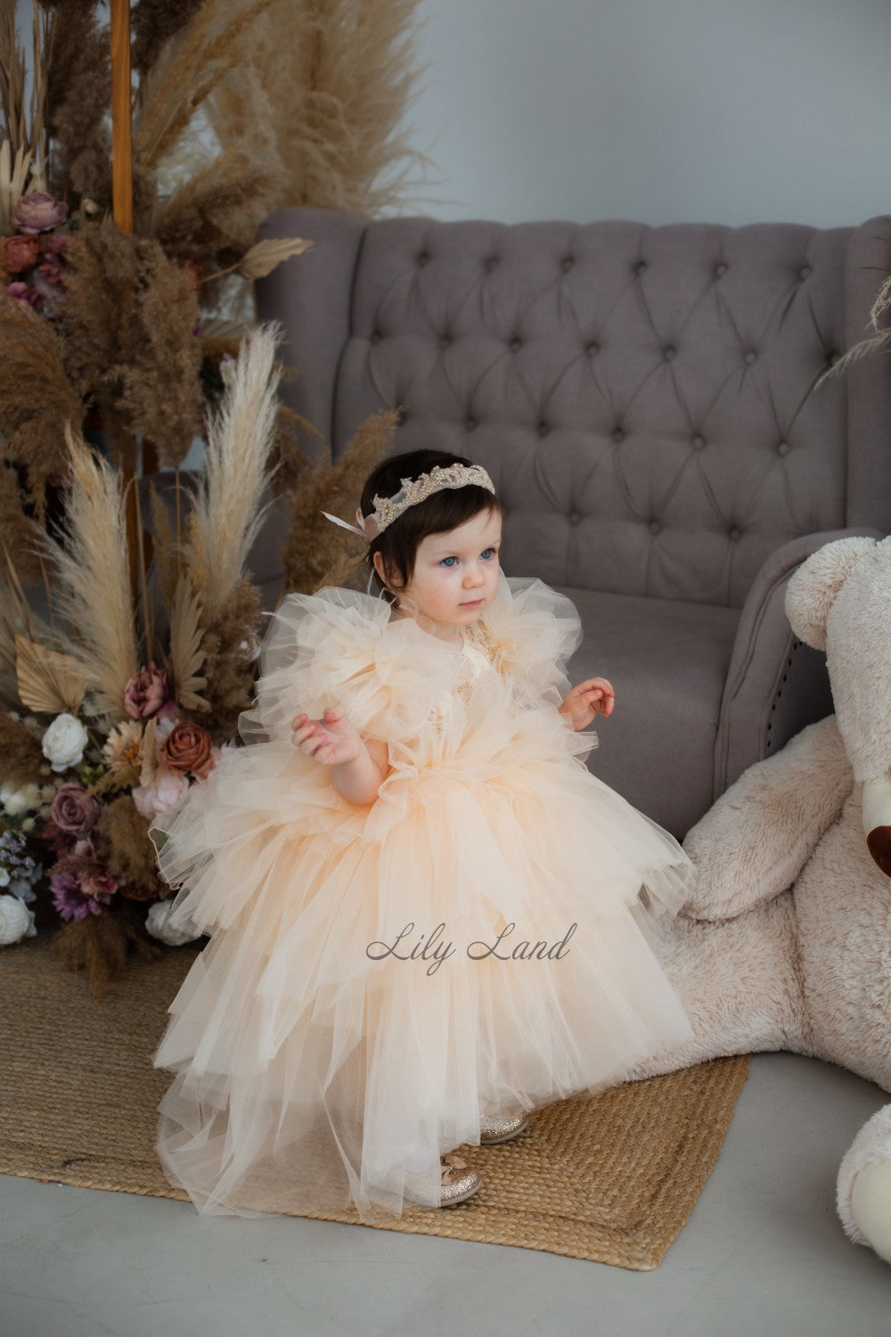 Captivating in its design, the uniquely beautiful and stylish Kelly dress now graces our collection in a stunning peach hue. This dress is not only perfect for lavish events but also for quiet celebrations, ensuring you shine in photos you'll proudly admire. Whether it's a birthday party, wedding, flower girl or Junior Bridesmaid role, prom night, photoshoot, Valentine's Day, dance, evening affair, ball gown event, festivals, dress-up adventures, or fairy princess-themed moments, the Kelly dress adds a touch of magic to every occasion.