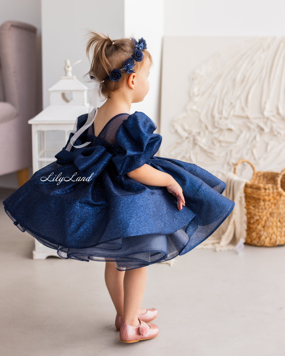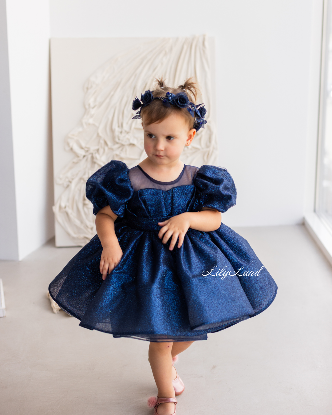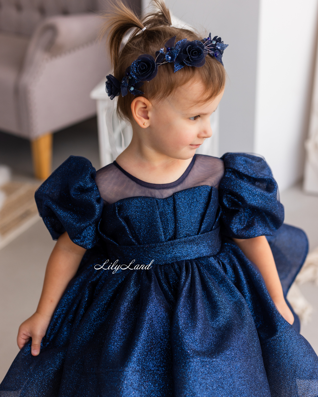 Is your little one ready to dazzle at every event? Introducing our enchanting Kira dress, crafted from glittering fabric in a captivating dark blue shade. This very puffy, thoughtfully designed attire guarantees she dazzles at every celebration – be it birthdays, festive gatherings, school performances, weddings, Christmas, photography sessions, Valentine's Day, dance events, evening soirées, flower girl moments, ball gowns, Halloween, festivals, dress-up escapades, or fairy princess-themed occasions.