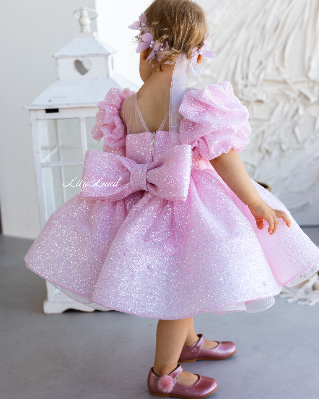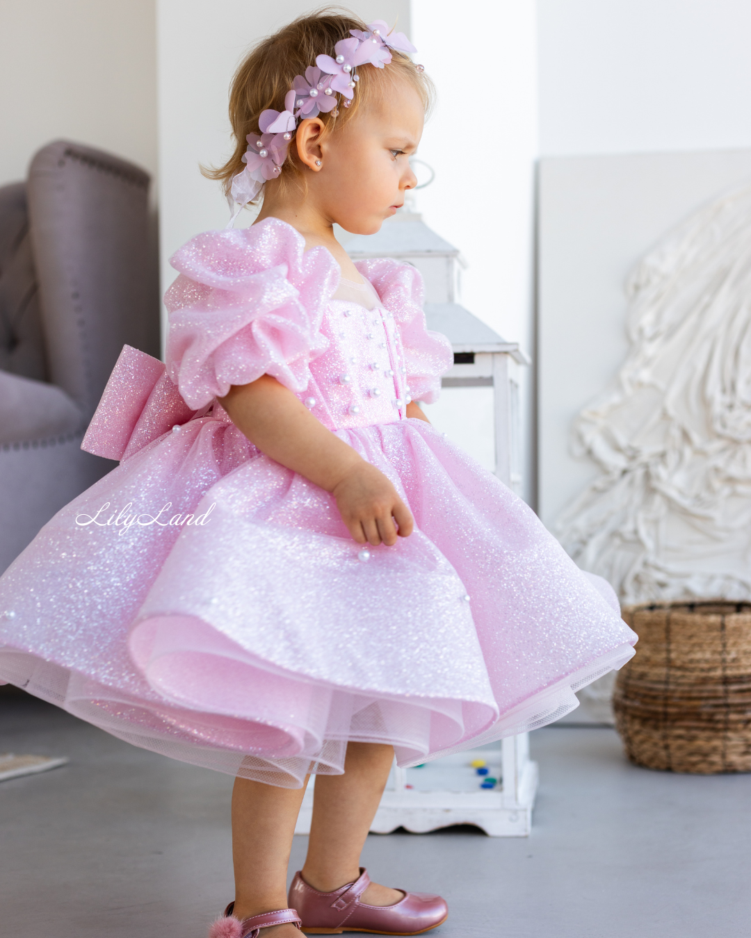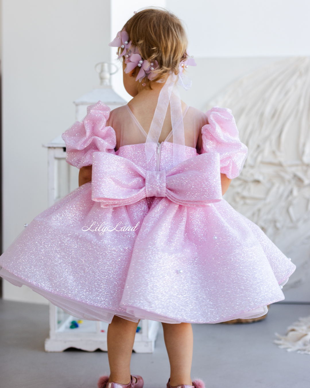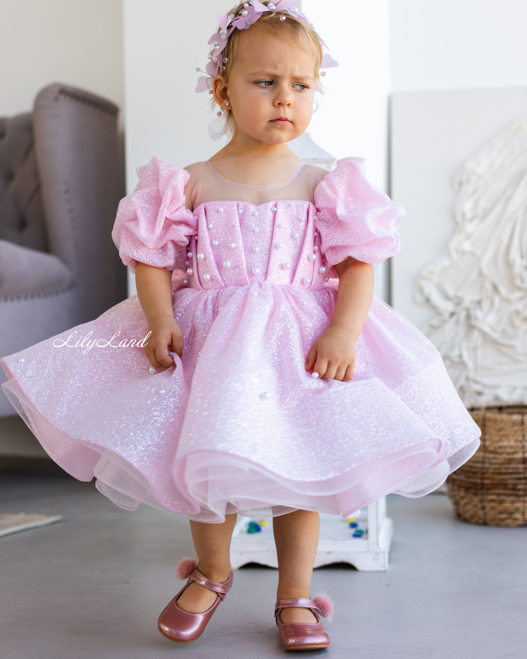 Is your little one ready to dazzle at every event? Introducing our enchanting Kira dress, crafted from glittering fabric in a captivating light pink shade. This very puffy, thoughtfully designed attire guarantees she dazzles at every celebration – be it birthdays, festive gatherings, school performances, weddings, Christmas, photography sessions, Valentine's Day, dance events, evening soirées, flower girl moments, ball gowns, Halloween, festivals, dress-up escapades, or fairy princess-themed occasions.