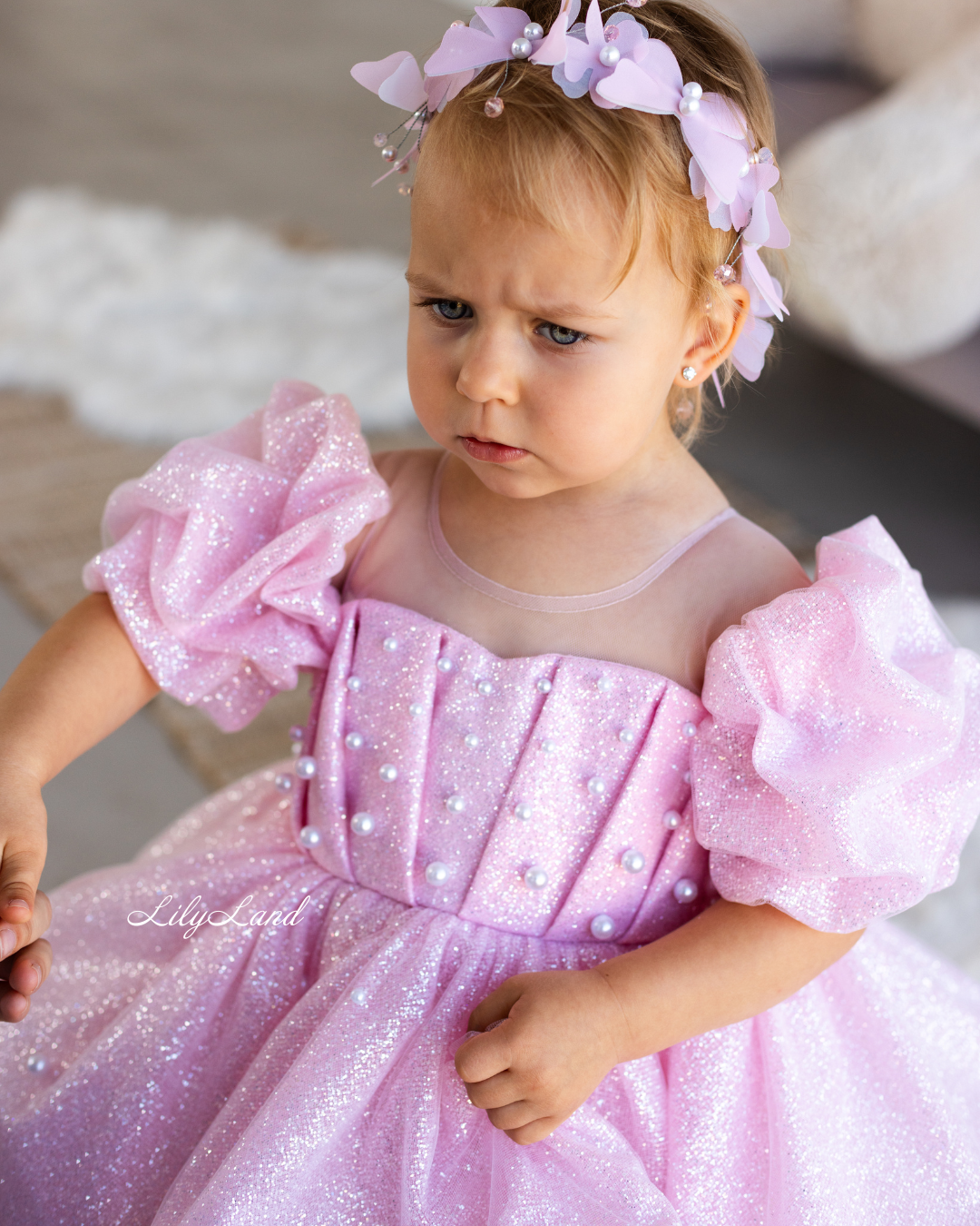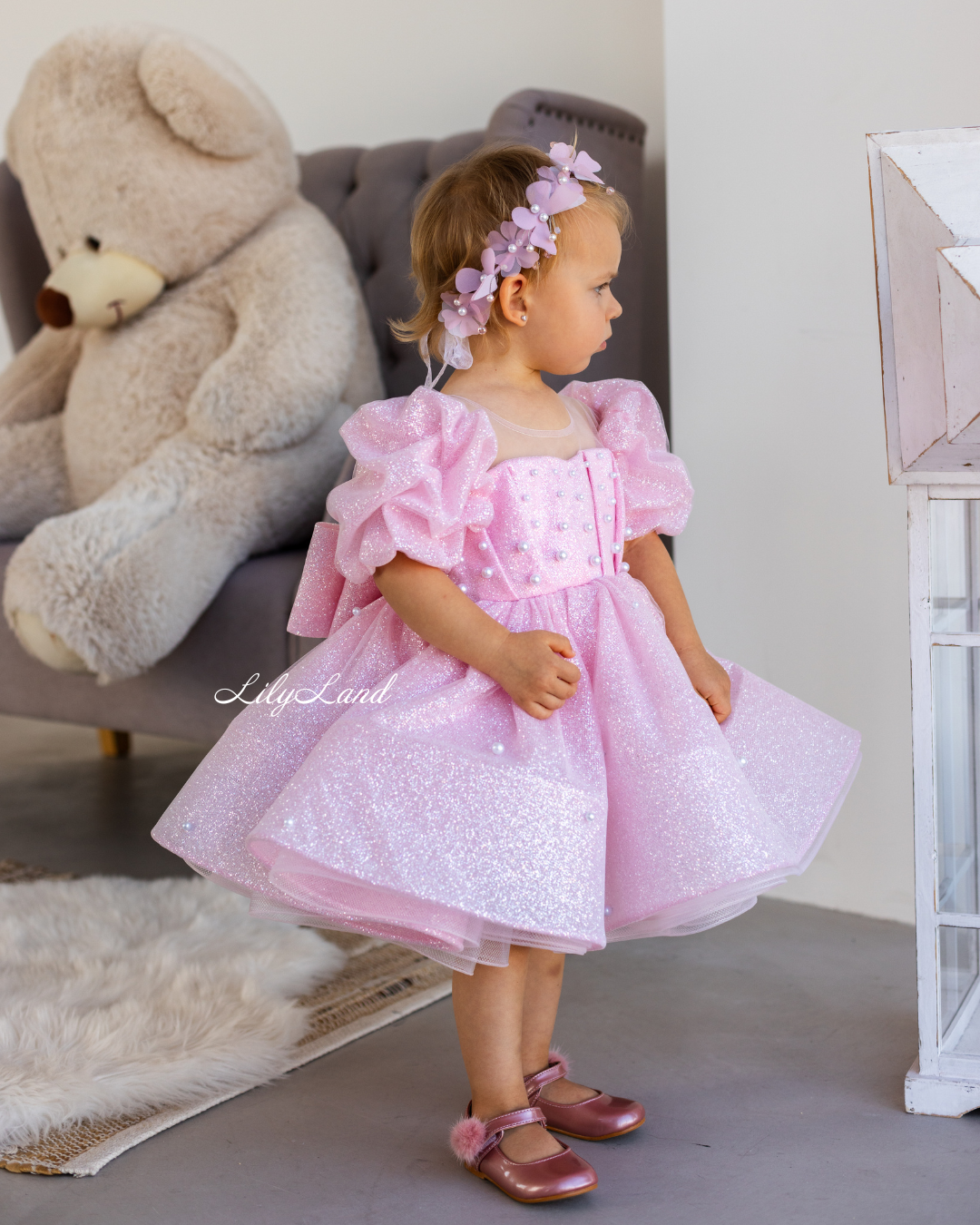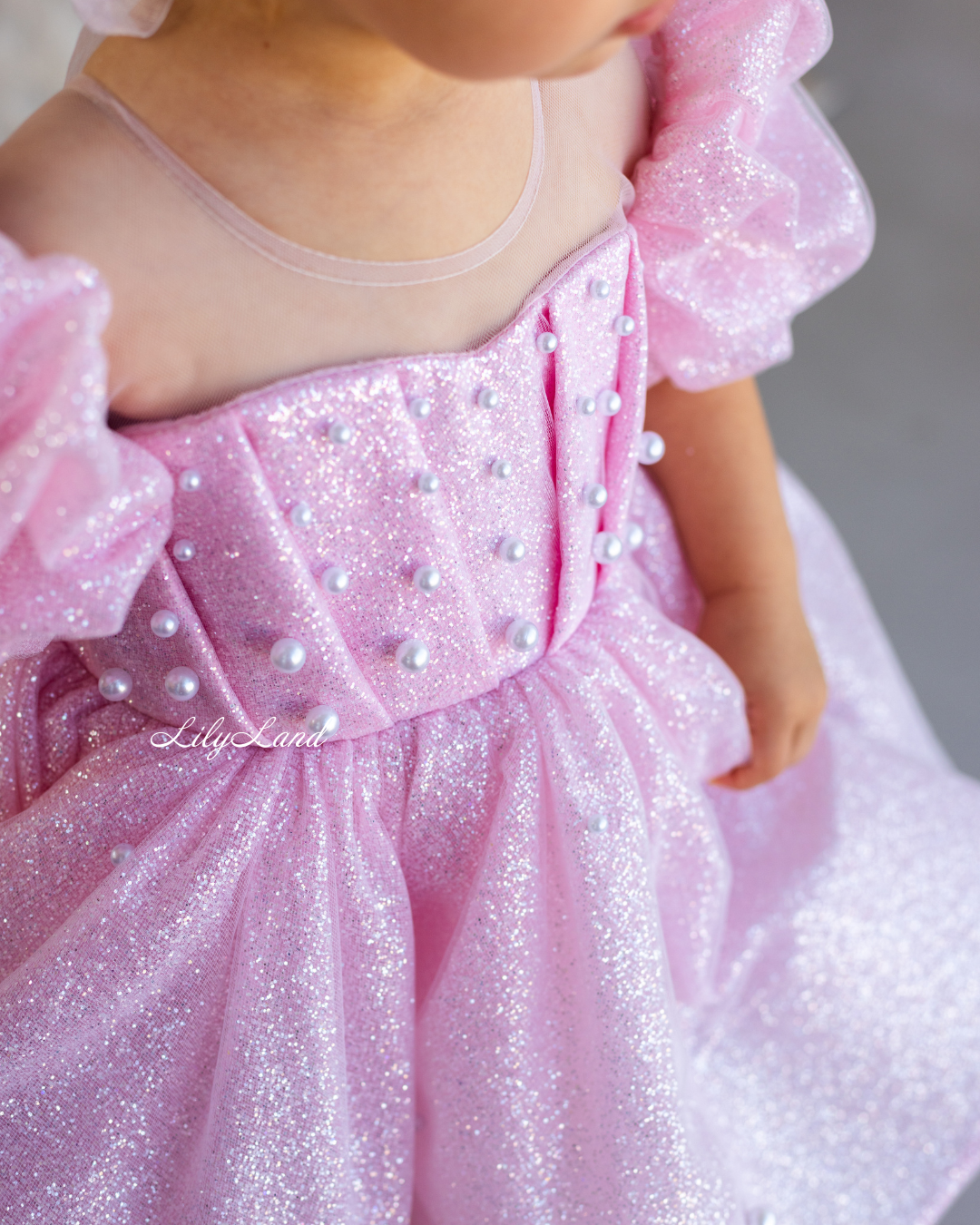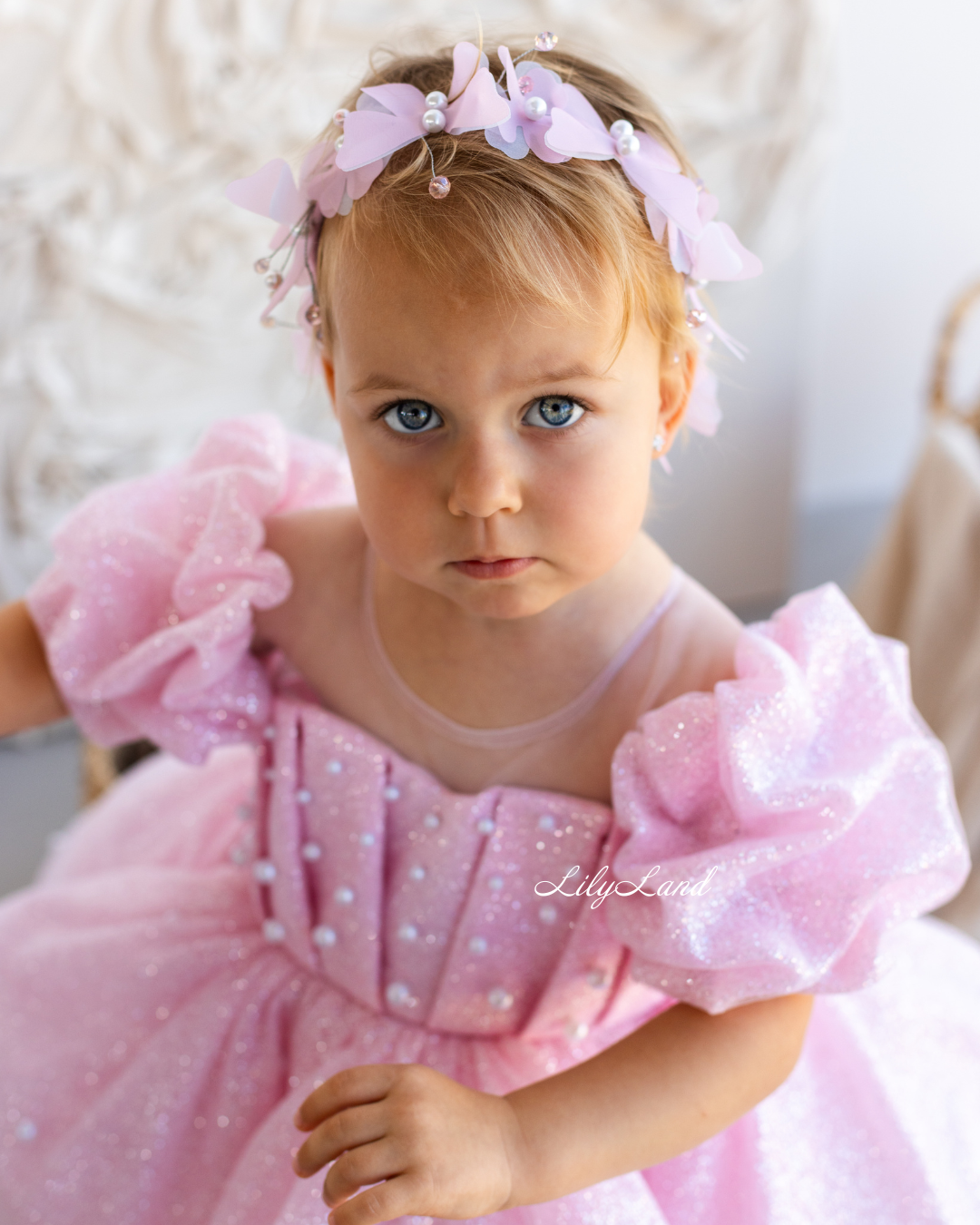 Is your little one ready to dazzle at every event? Introducing our enchanting Kira dress, crafted from glittering fabric in a captivating light pink shade. This very puffy, thoughtfully designed attire guarantees she dazzles at every celebration – be it birthdays, festive gatherings, school performances, weddings, Christmas, photography sessions, Valentine's Day, dance events, evening soirées, flower girl moments, ball gowns, Halloween, festivals, dress-up escapades, or fairy princess-themed occasions.
