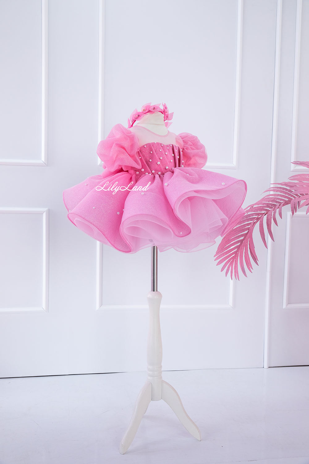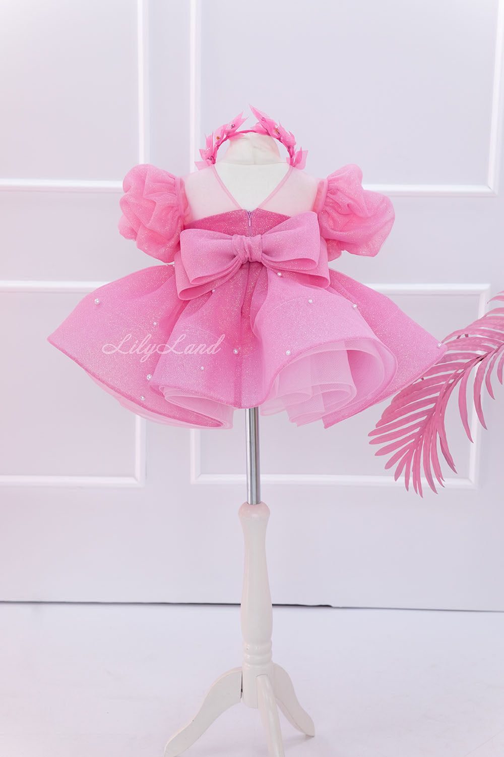 Is your little one ready to dazzle at every event? Introducing our enchanting Kira dress, crafted from glittering fabric in a captivating pink shade. This very puffy, thoughtfully designed attire guarantees she dazzles at every celebration – be it birthdays, festive gatherings, school performances, weddings, Christmas, photography sessions, Valentine's Day, dance events, evening soirées, flower girl moments, ball gowns, Halloween, festivals, dress-up escapades, or fairy princess-themed occasions.