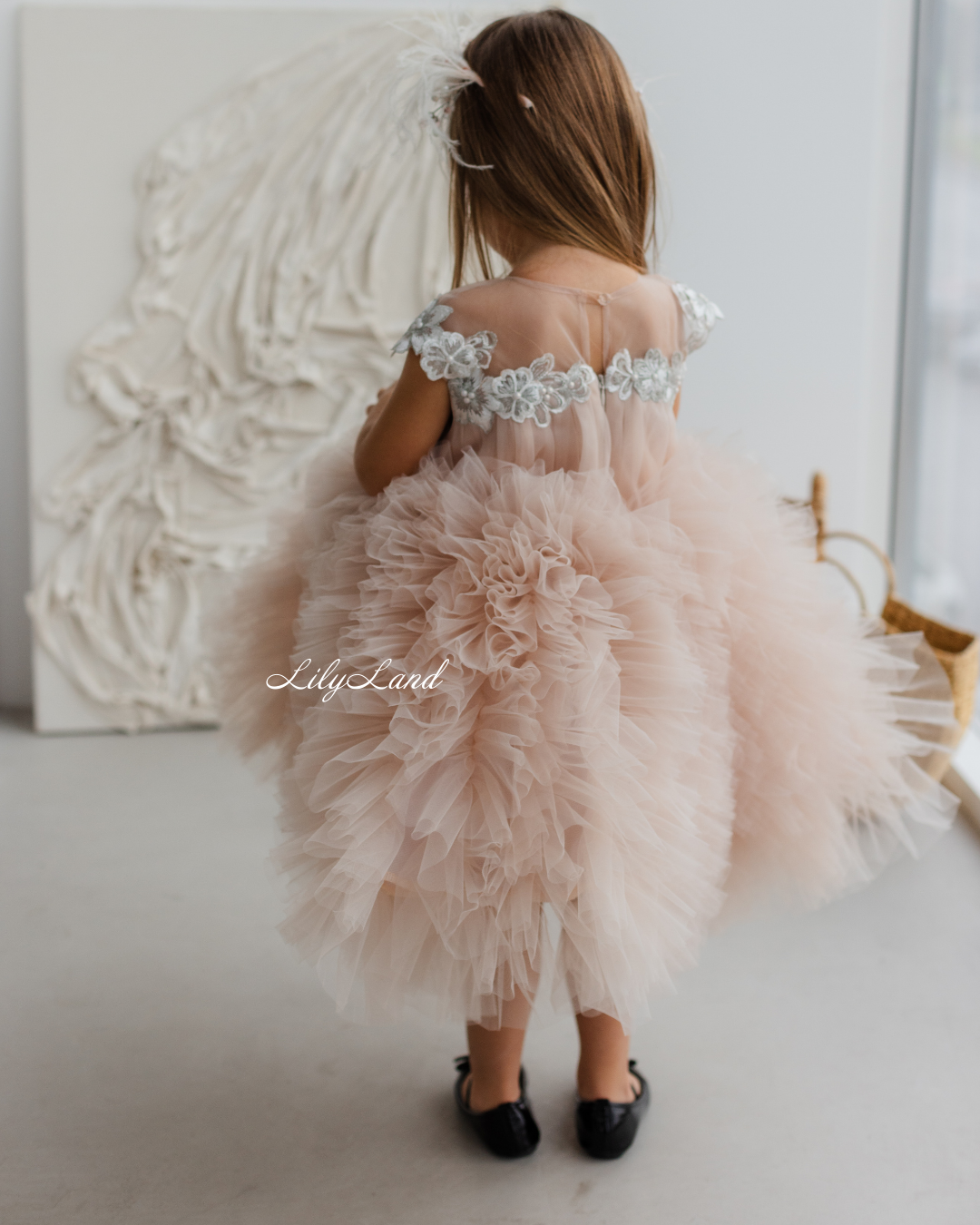 Dress Lel will help your daughter look elegant at any festive event. It is made in a delicate cappuccino color. Whether it's a birthday celebration, a festive gathering, a memorable prom night, a dreamy wedding, a captivating photoshoot, a flower girl's moment, a magical Christmas gathering, or a romantic Valentine's Day, this dress is the perfect choice to make your girl feel like a true princess. Dress Lel can be made in various colors and sizes, taking into account all the wishes of the buyer.