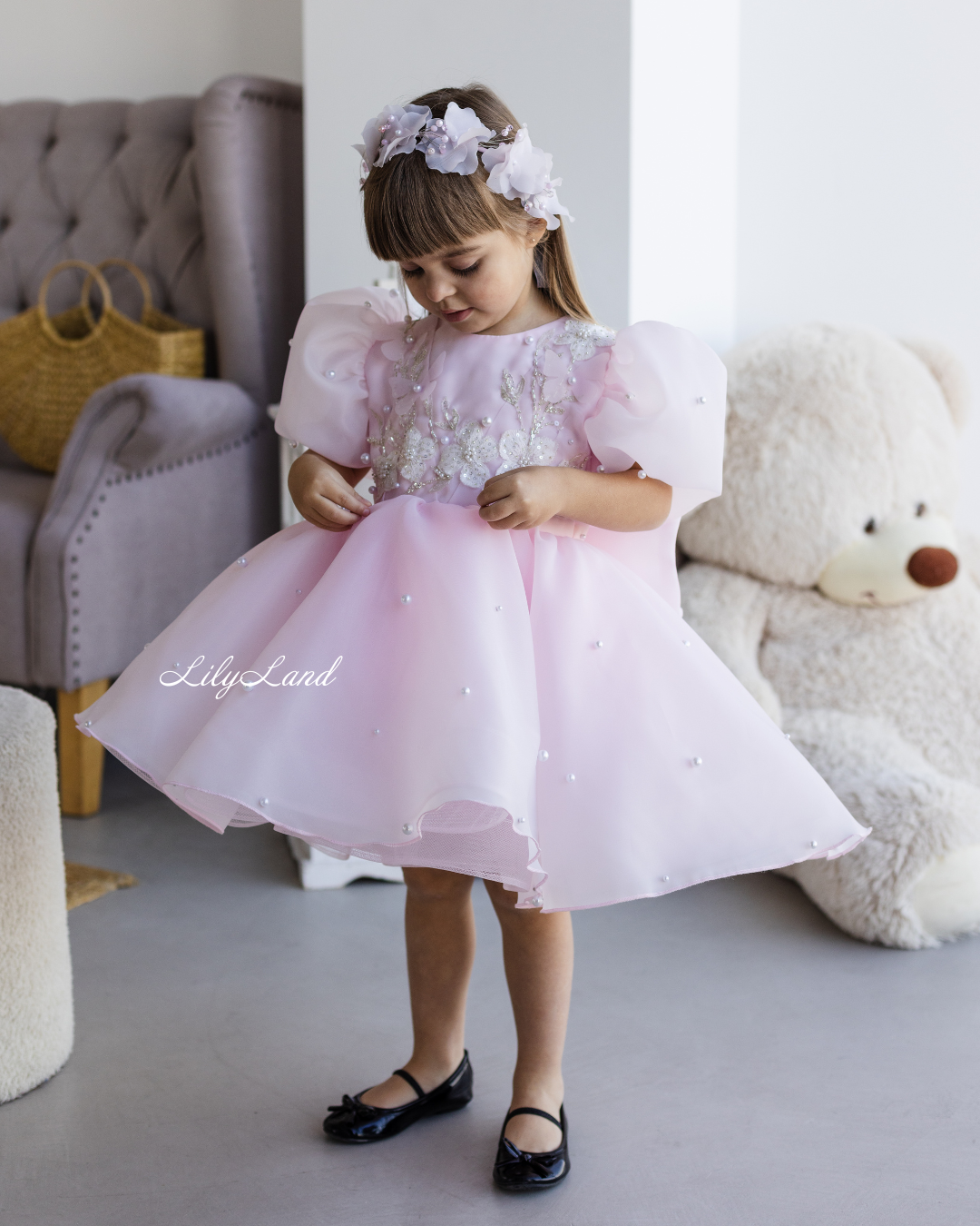 Mia dress it is a stunning birthday baby girl gown that will leave everyone in awe! Crafted in a light pink color and adorned with delicate floral & butterflies appliqué, this dress is perfect for making memories at birthday parties, weddings, pageants, proms, flower girl roles, graduations, and dances. Available in sizes for toddlers and children, the Mia dress combines elegance with comfort, ensuring your little one feels confident and beautiful throughout the event.