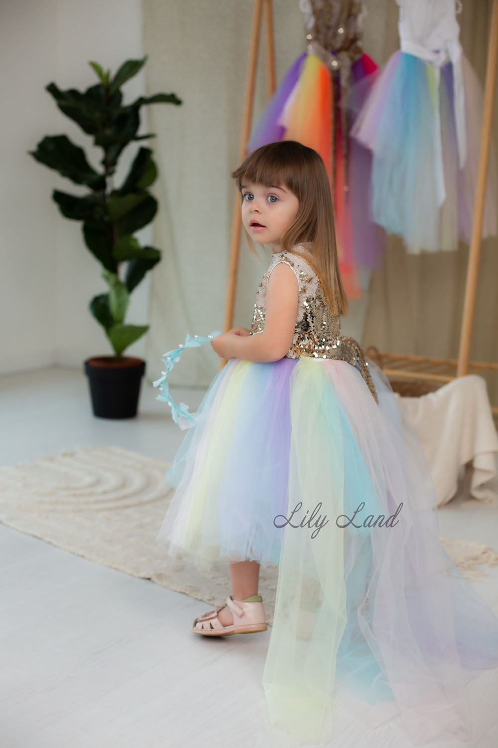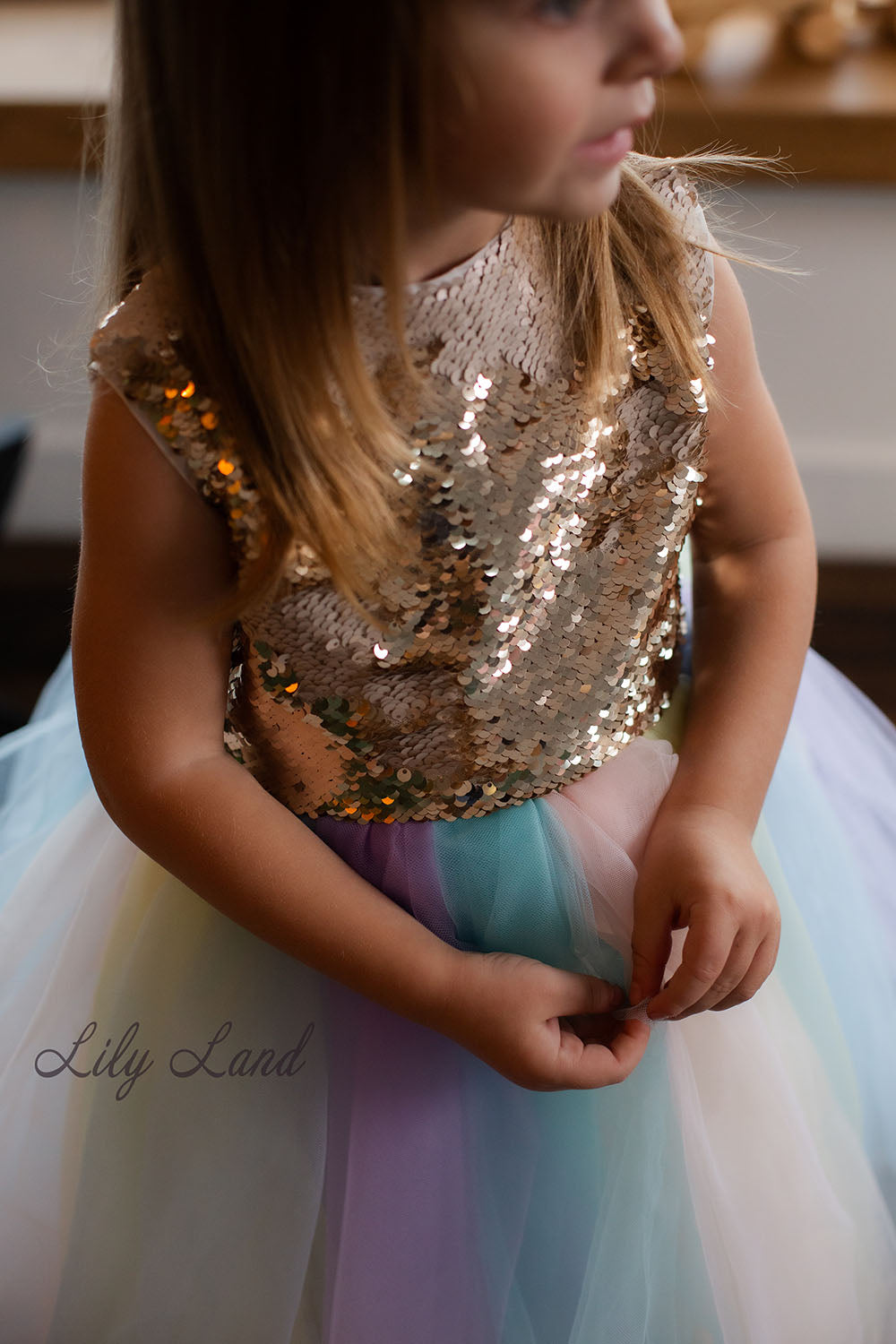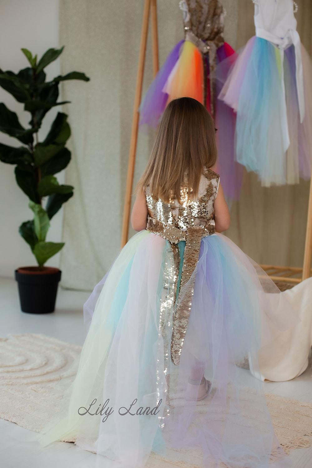 MyLittlePony Unicorn Girl Dress with Gold Sequins and Multicolored Skirt
