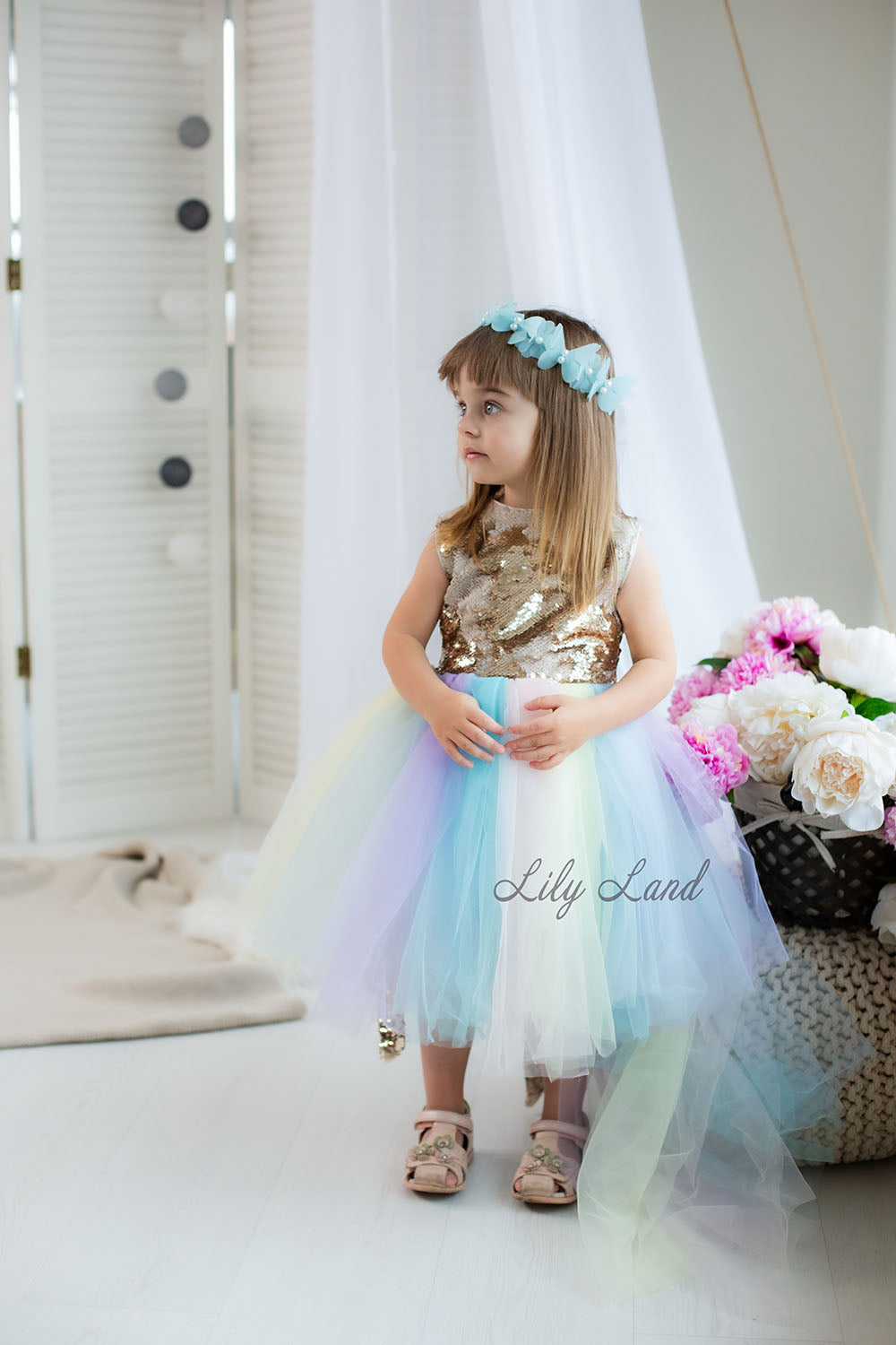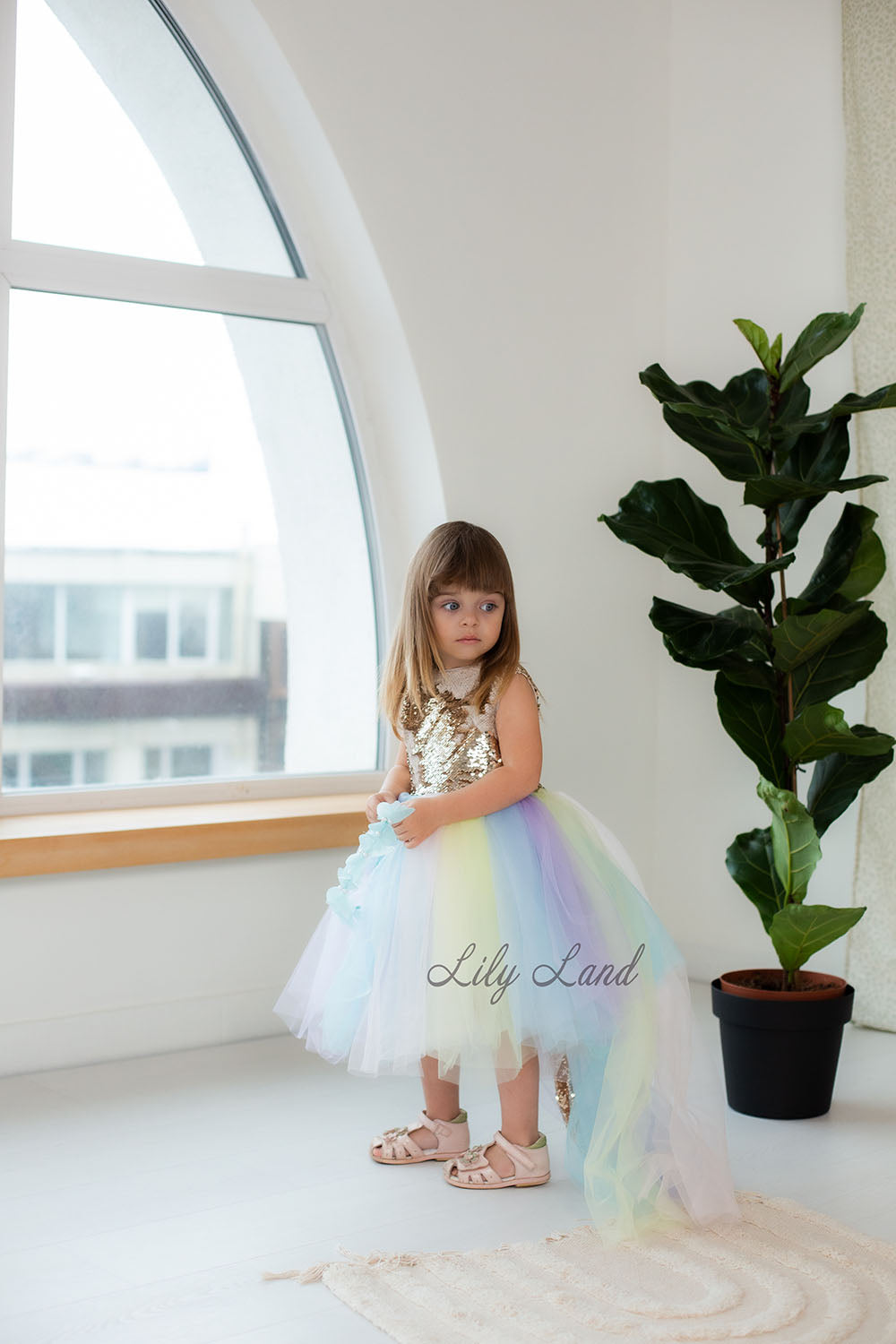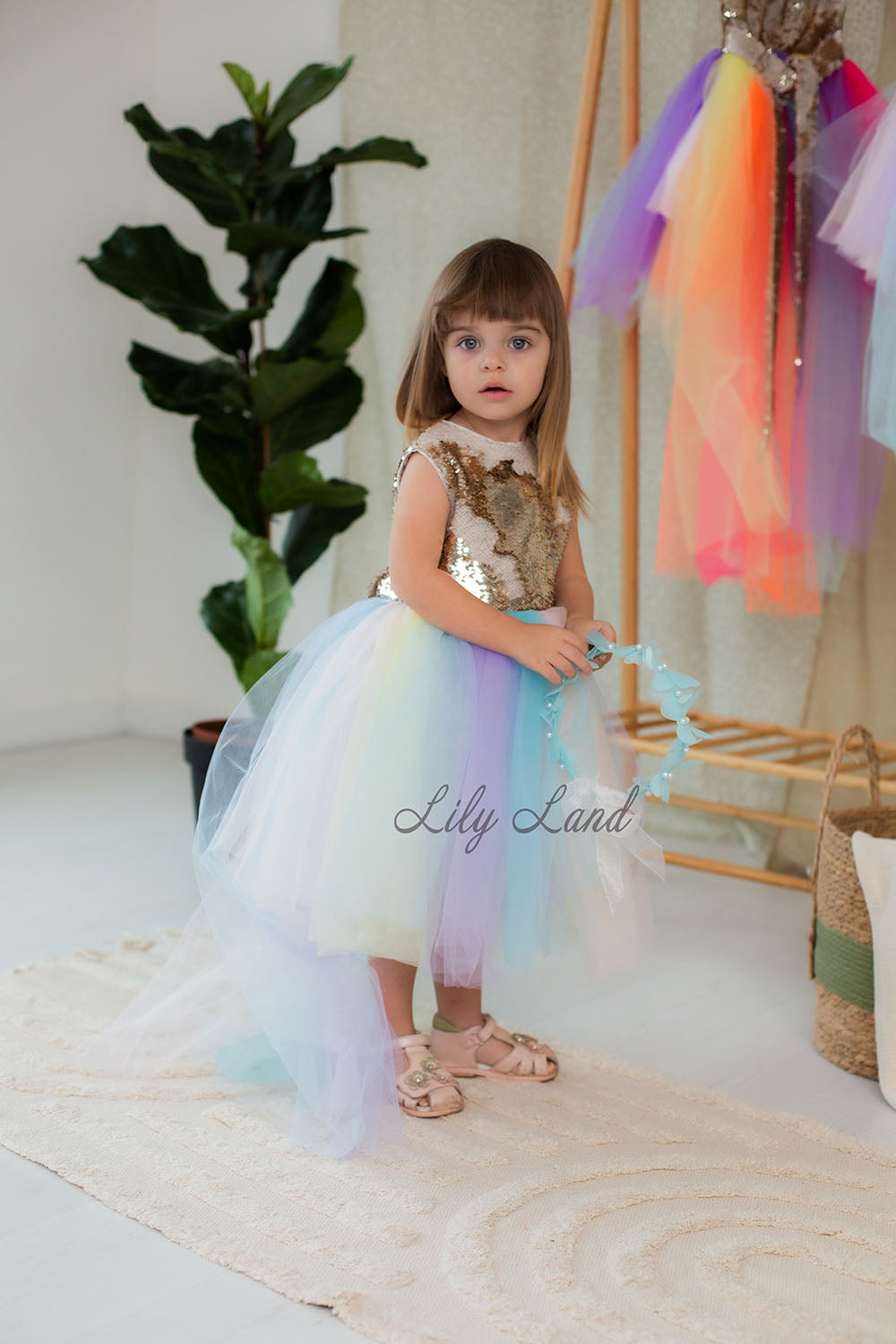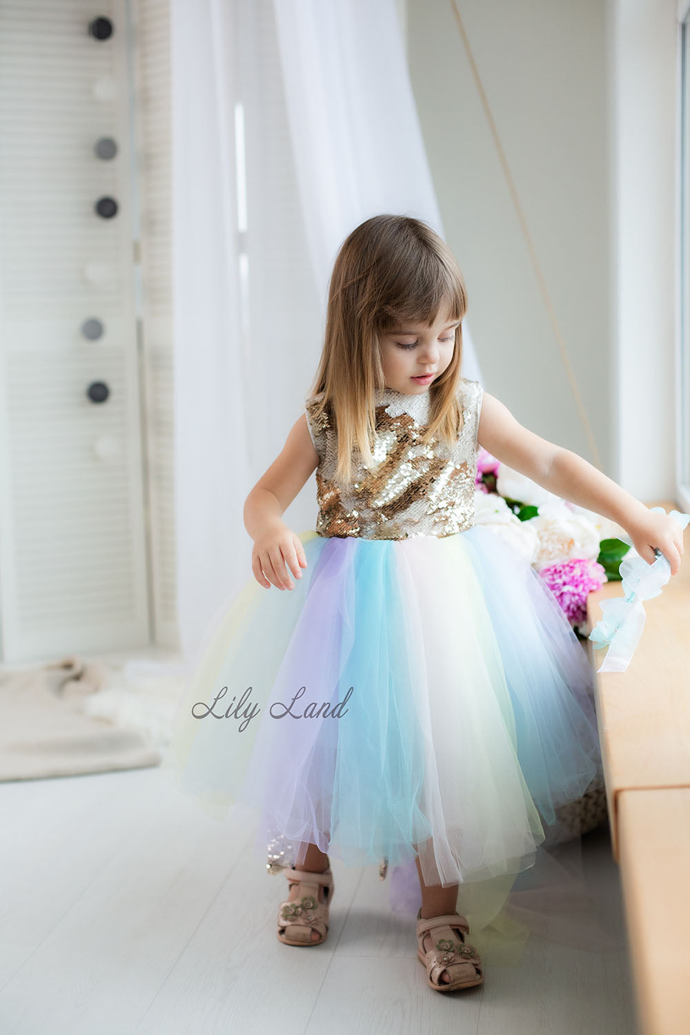 MyLittlePony Unicorn Girl Dress with Gold Sequins and Multicolored Skirt