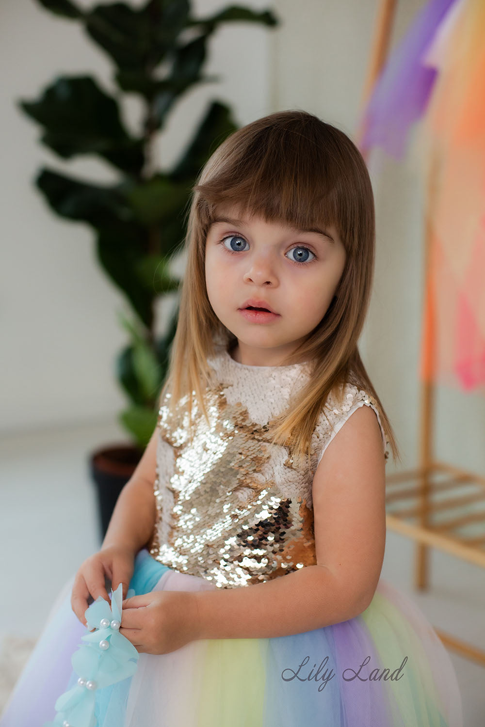 Absolutely stunning multicolored girl's dress featuring an exquisitely original and fashionable design crafted from premium tulle and adorned with sequins. This enchanting attire is ideal for a myriad of celebrations including birthdays, weddings, parties, Christmas, photography sessions, Valentine's Day, dances, evenings out, flower girl duties, ball gowns, festival attire, dress-up play, as well as fairy and princess costumes, among other special occasions.
