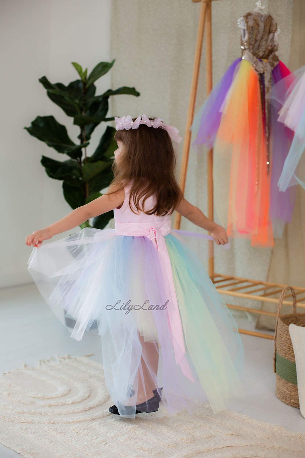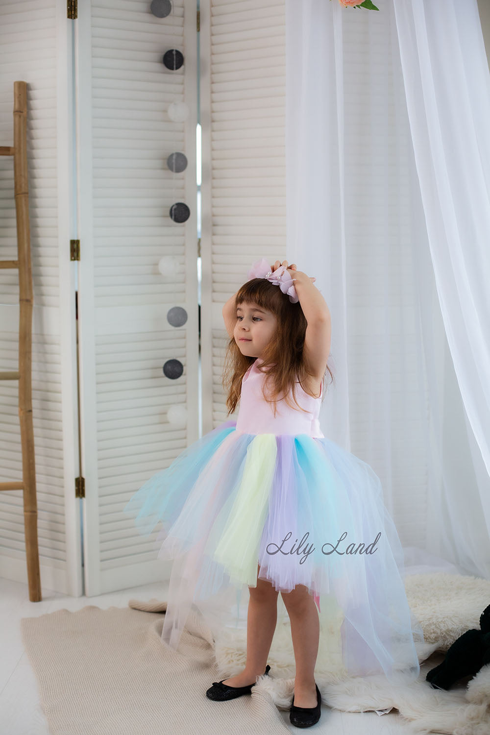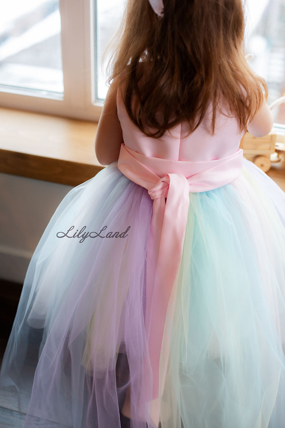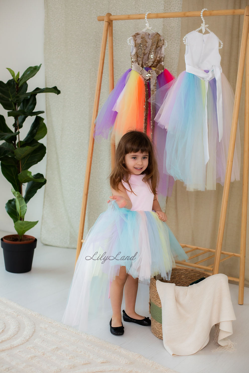 MyLittlePony Unicorn Girl Dress with Pastel Multicolored Skirt and Pink Satin Top
