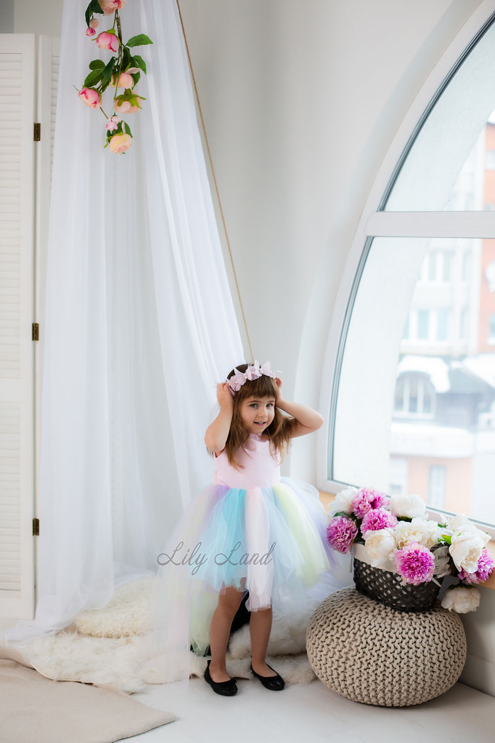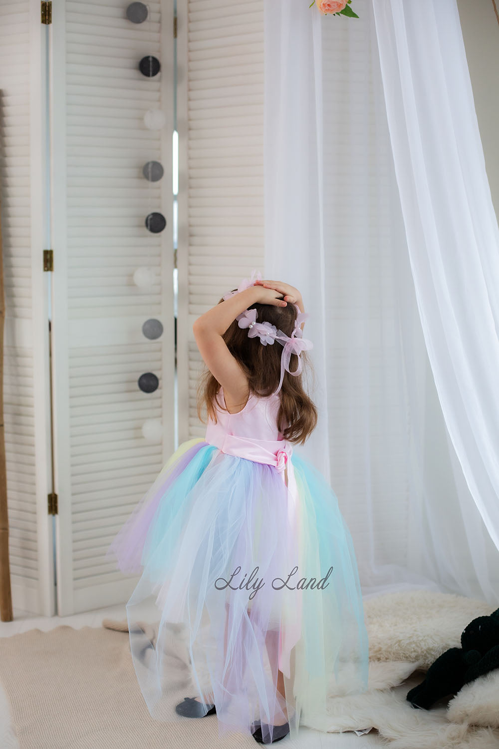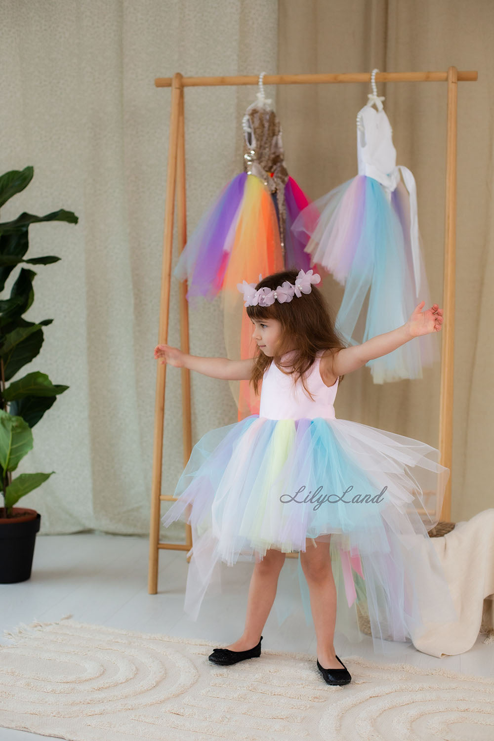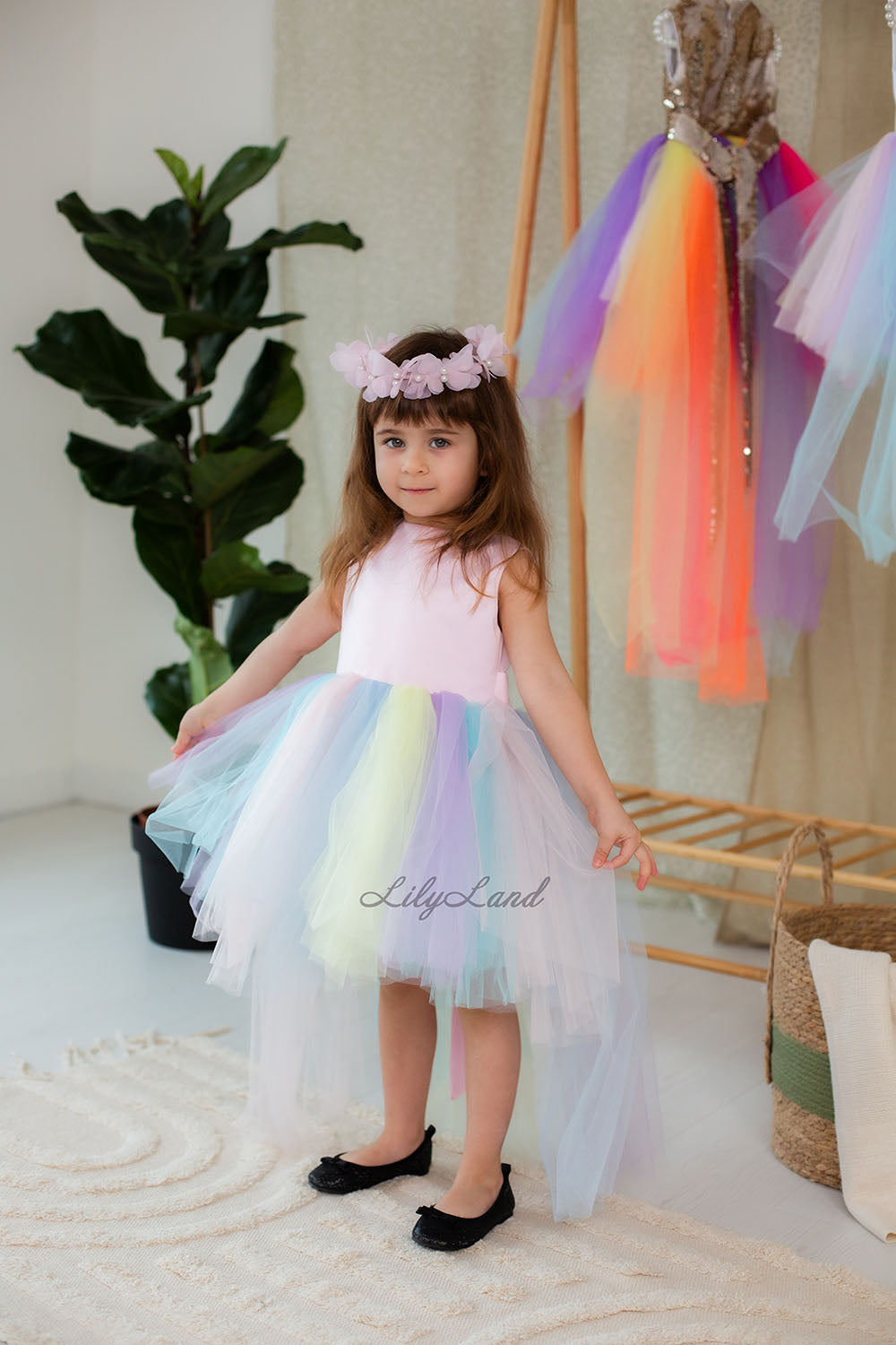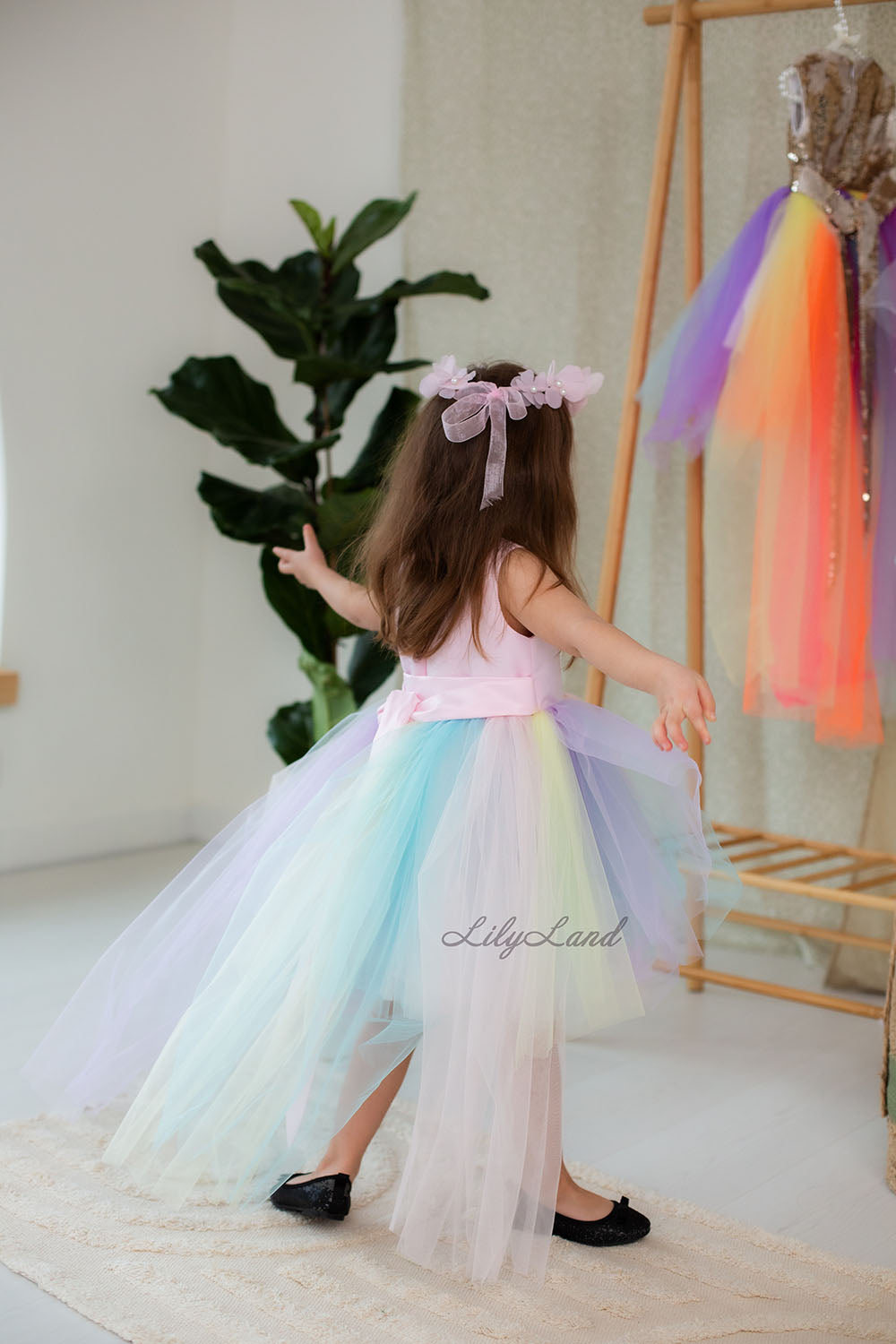 MyLittlePony Unicorn Girl Dress with Pastel Multicolored Skirt and Pink Satin Top