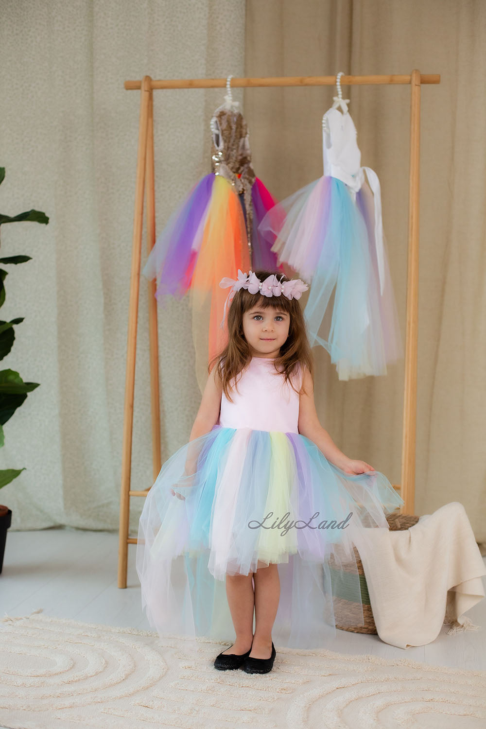 Elevate any celebration with our absolutely stunning multicolored girl's dress. Its exquisitely original and fashionable design, crafted from premium tulle, adds enchantment to birthdays, weddings, parties, Christmas festivities, photography sessions, Valentine's Day affairs, dances, and more. From flower girl duties to prom gowns and dress-up play, this attire promises to make every occasion magical. Experience the charm for yourself. Shop now and make every moment unforgettable.