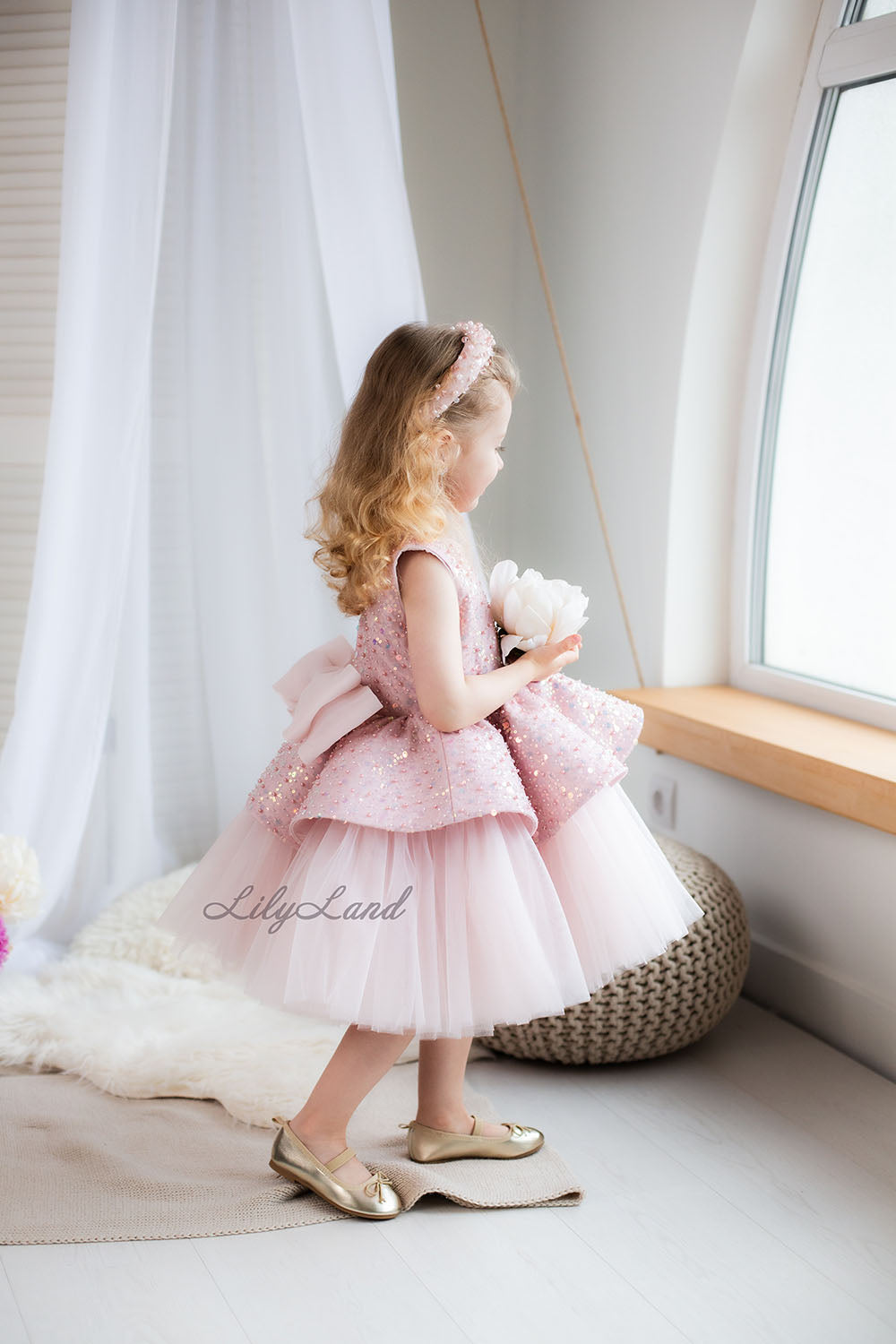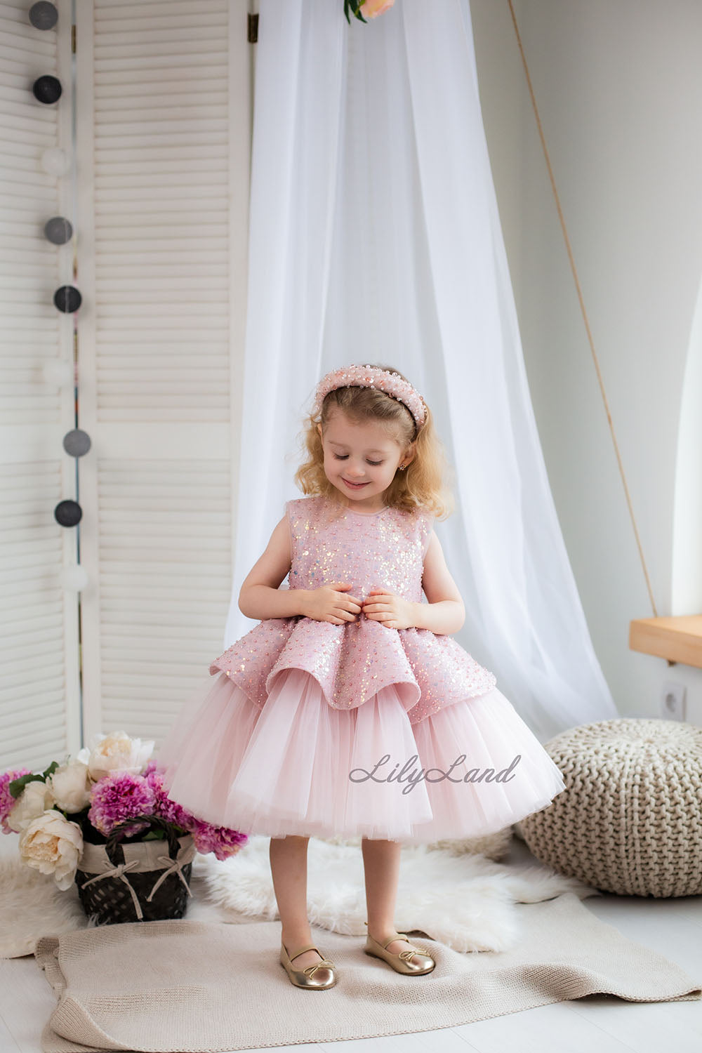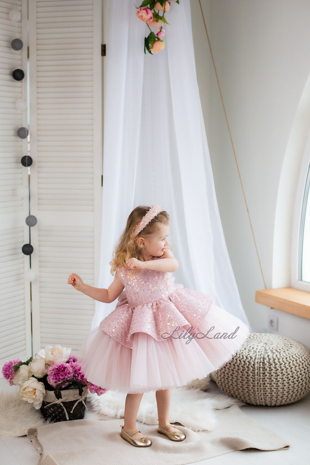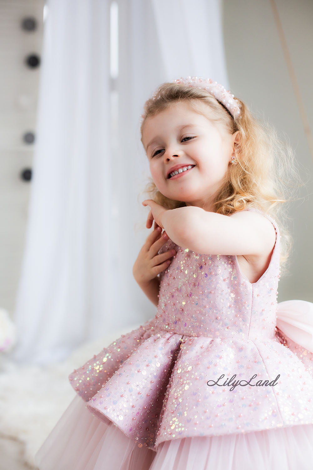 Nancy dress in soft blush pink - a charming blend of style and grace. This elegant gown is perfect for Christmas parties, birthdays, Valentine's Day events, prom nights, weddings (as a flower girl or junior bridesmaid), photoshoots, and evening events. Designed to captivate with its timeless beauty, the Nancy dress comes in various sizes and customizable shades, ensuring a perfect fit.