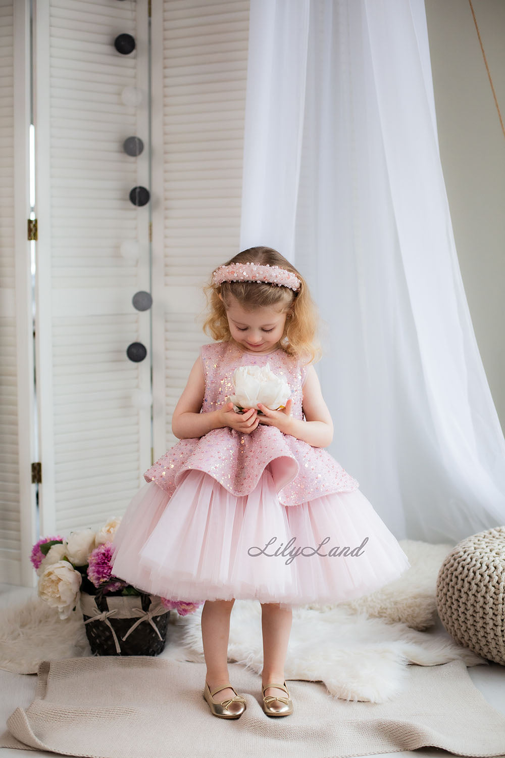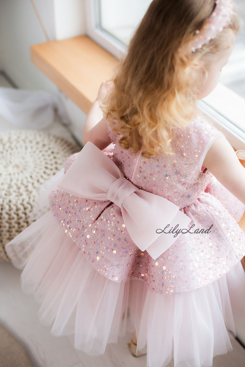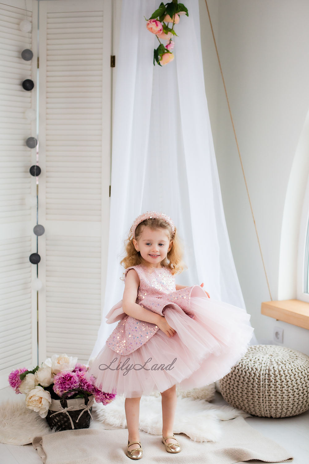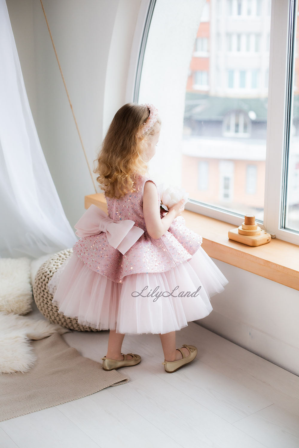 Nancy dress in soft blush pink - a charming blend of style and grace. This elegant gown is perfect for Christmas parties, birthdays, Valentine's Day events, prom nights, weddings (as a flower girl or junior bridesmaid), photoshoots, and evening events. Designed to captivate with its timeless beauty, the Nancy dress comes in various sizes and customizable shades, ensuring a perfect fit.