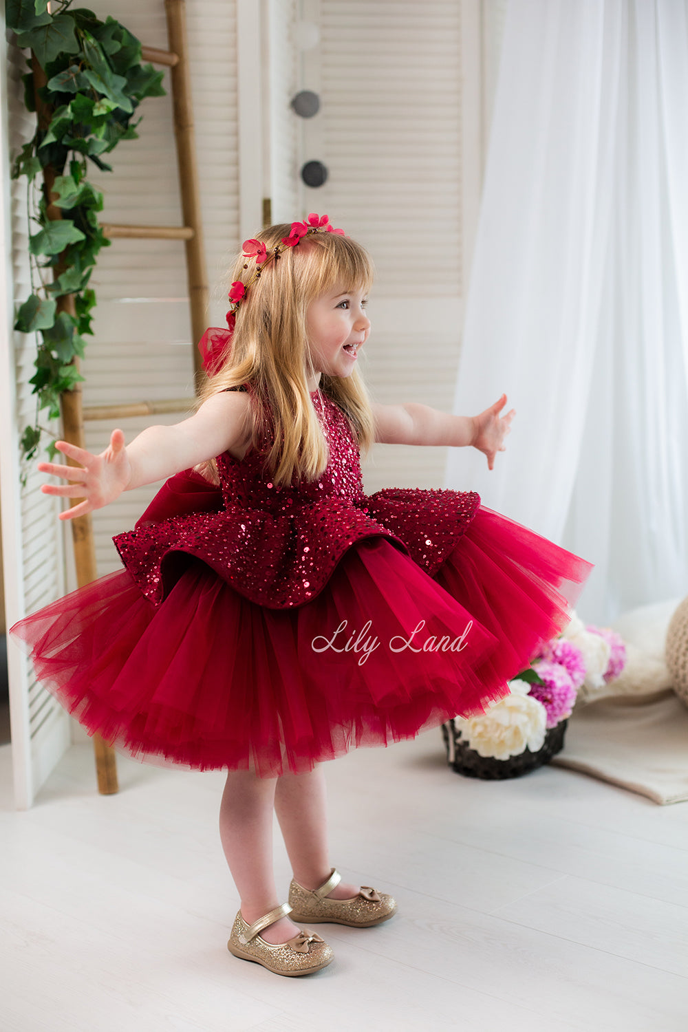Our Nancy dress in luxurious burgundy hue and elegant design, the dress is the epitome of sophistication and charm. And it is perfect for any celebration – Christmas, birthday party, wedding, flower girl or junior bridesmaid, prom, photoshoot, Valentine's Day, dance, evening, ball gown, festival wear, dress-up, fairy, and princess. Customizable in a variety of sizes and shades, the dress ensures that every detail is tailored to meet the desires of the wearer.