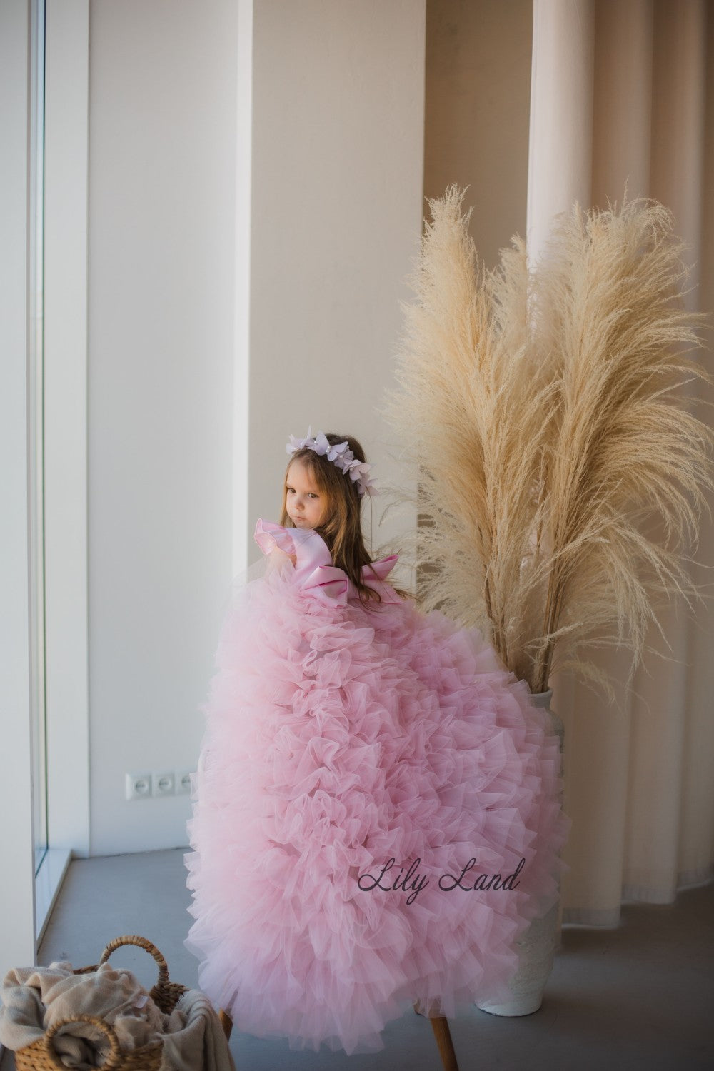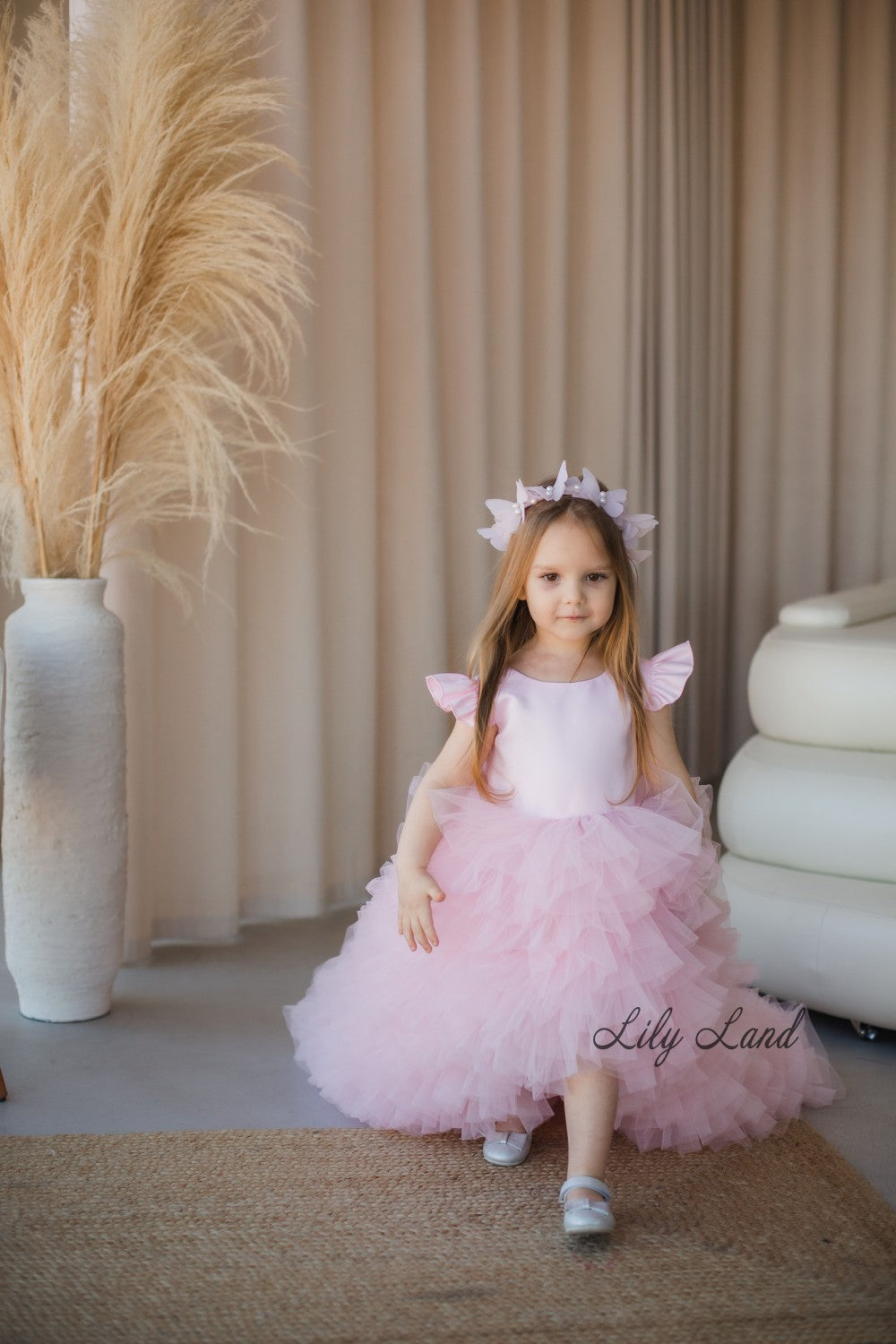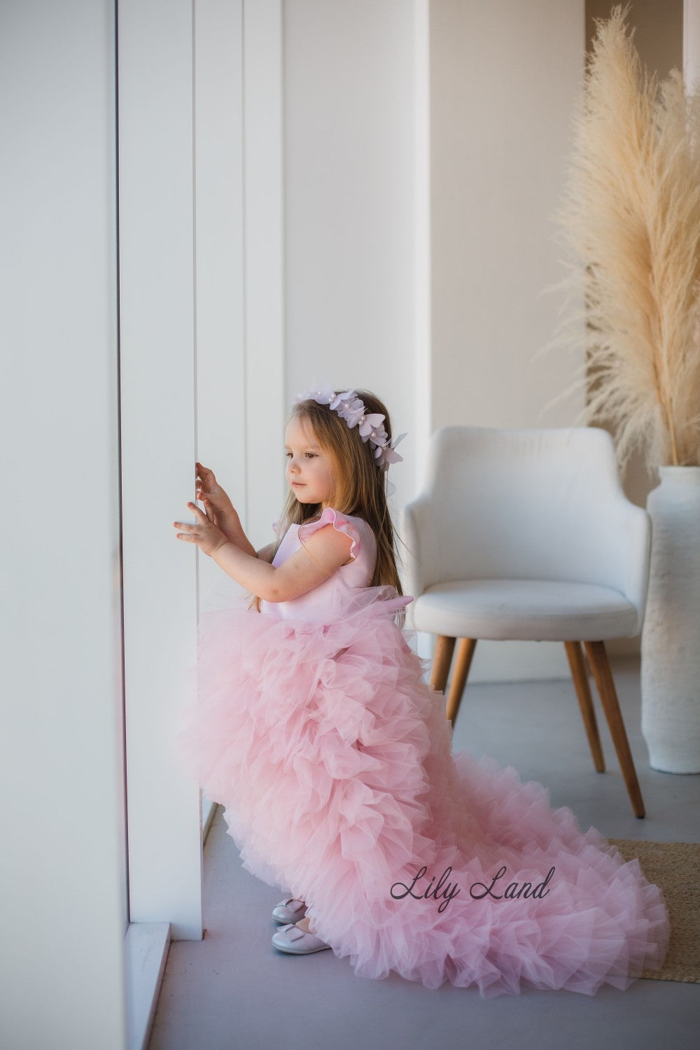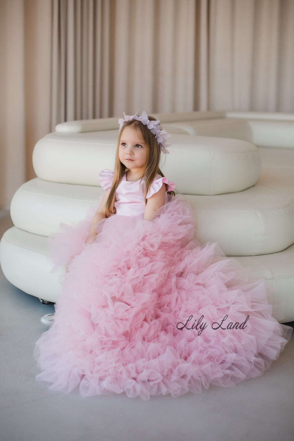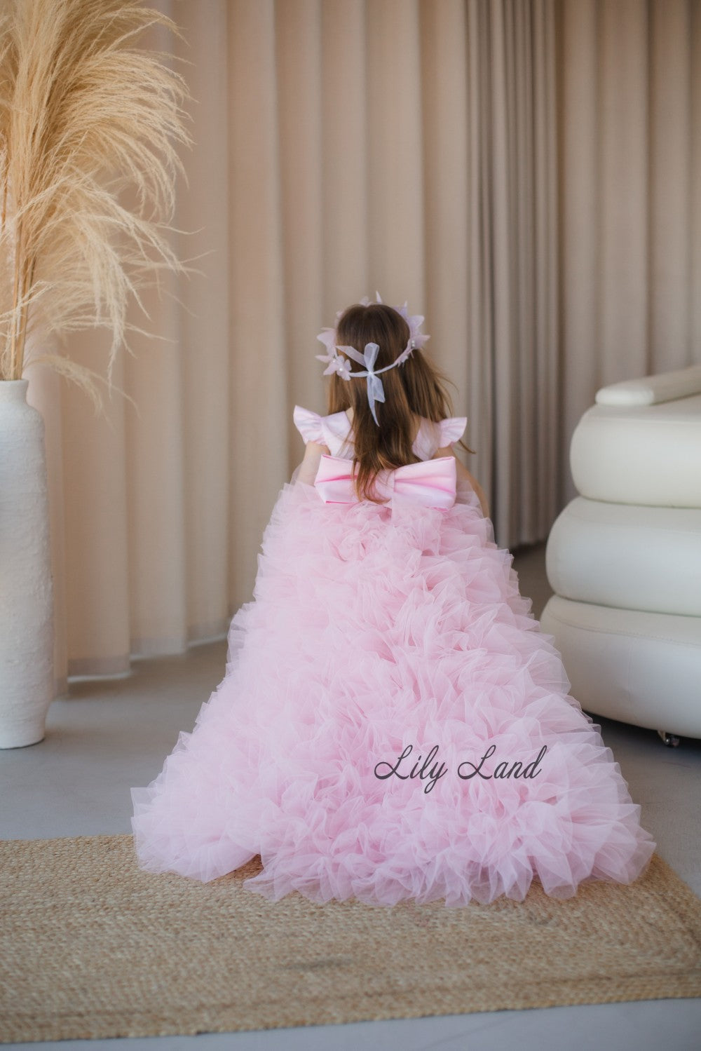 Rosa Girl Dress in Blush Pink with Long Train