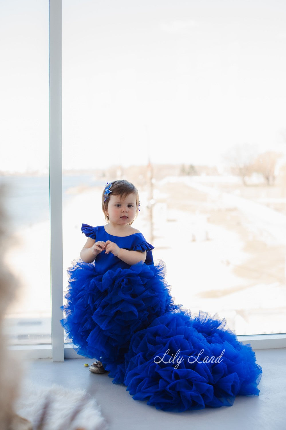 Ready for your little star to steal the spotlight? Say hello to the Rosa girl's dress – a charming ensemble crafted to bring pure joy to your child's world. This enchanting dress, now available in vibrant royal blue, boasts a lovely skirt, adorable sleeves, and a gracefully long train. Whether it's a birthday bash, a special occasion, a dazzling prom night, a magical wedding, a memorable photoshoot, or an adorable flower girl appearance, the Rosa dress is the key to creating unforgettable moments.