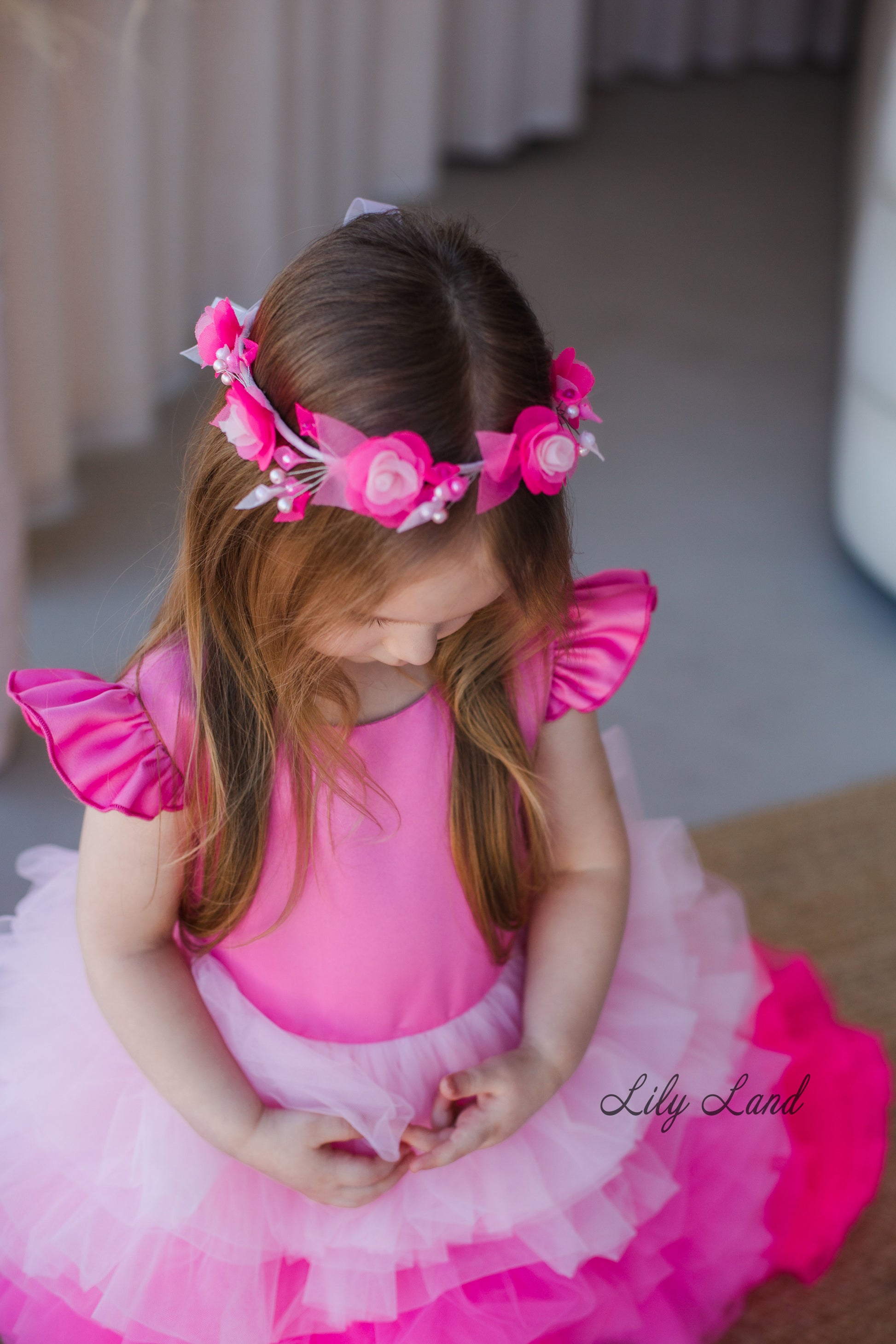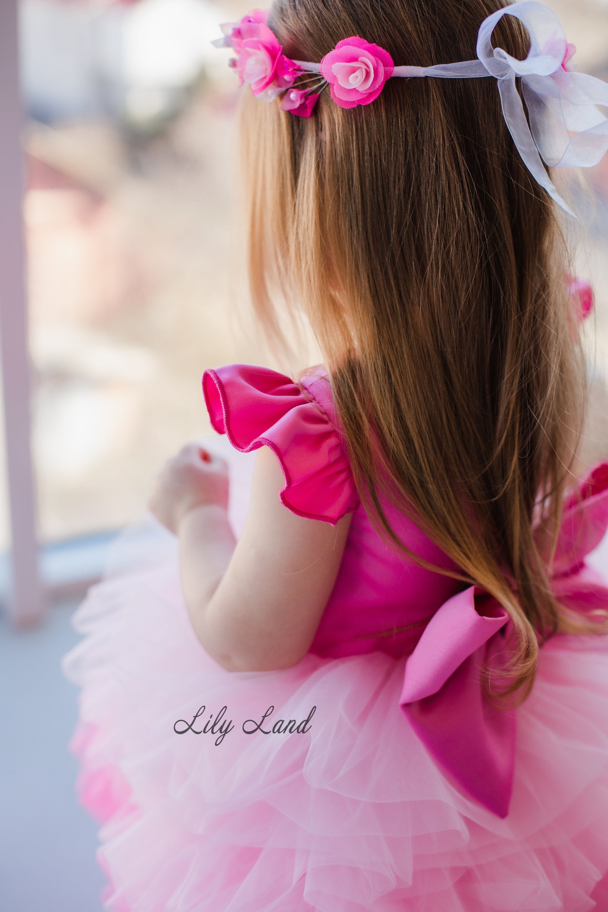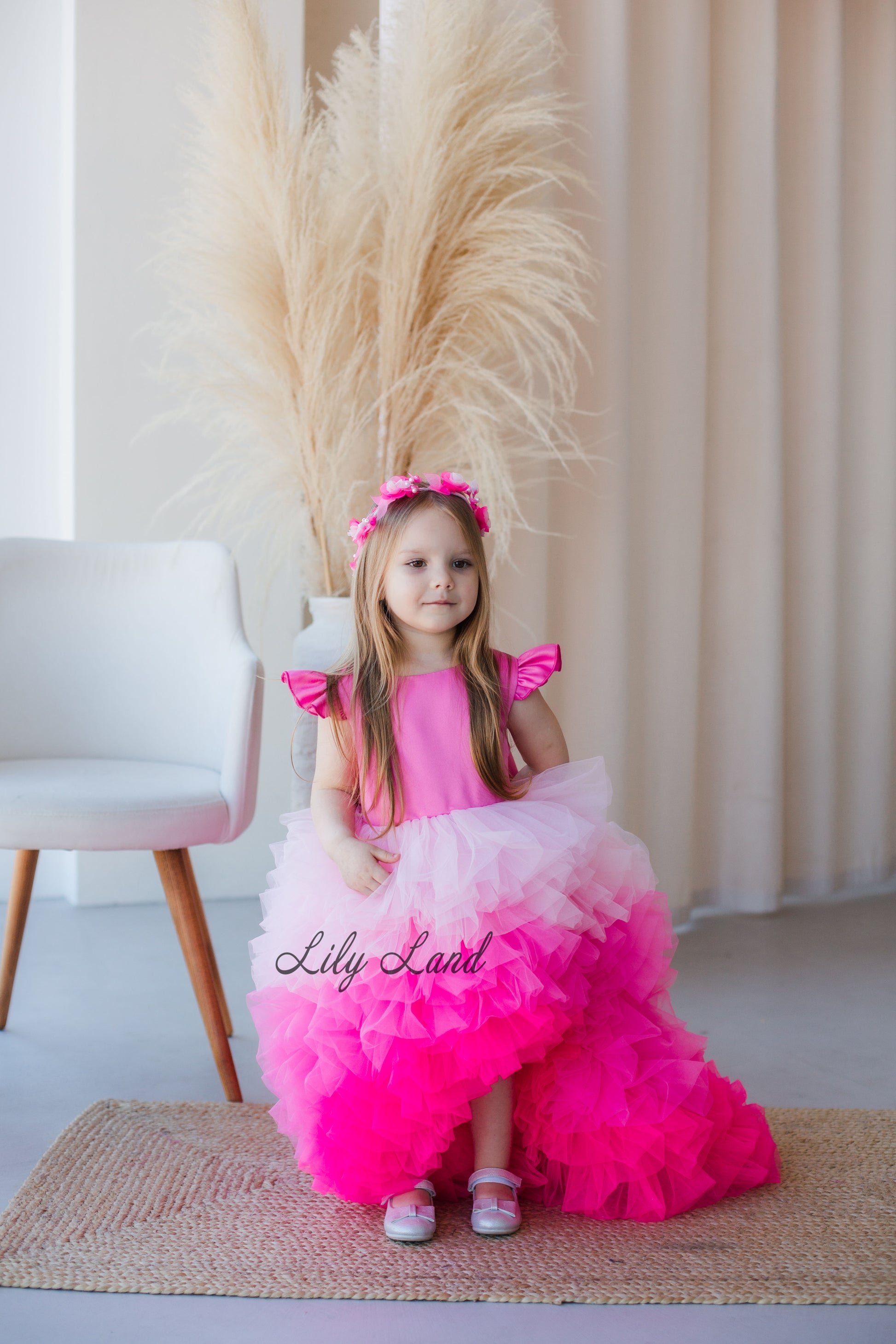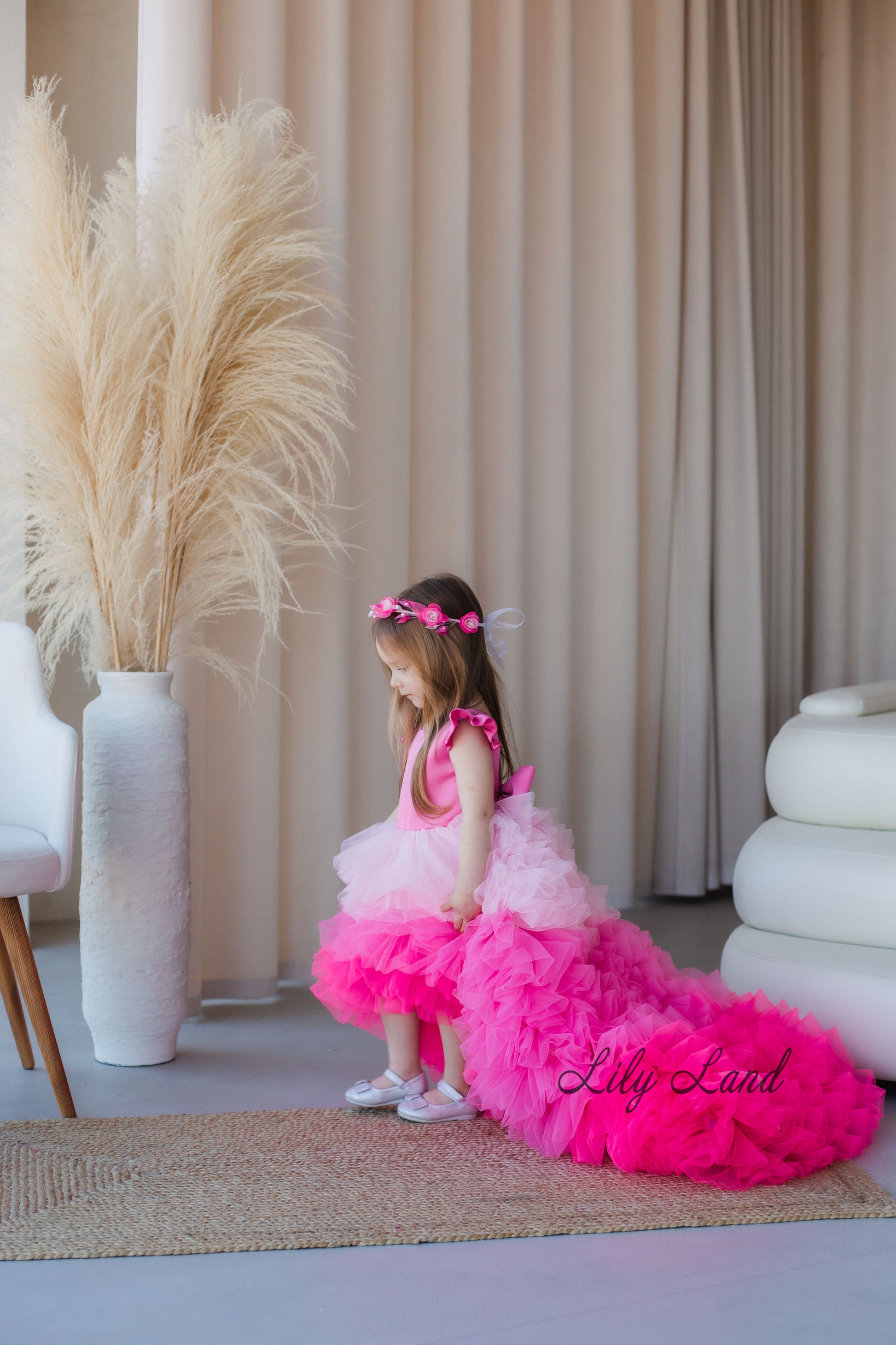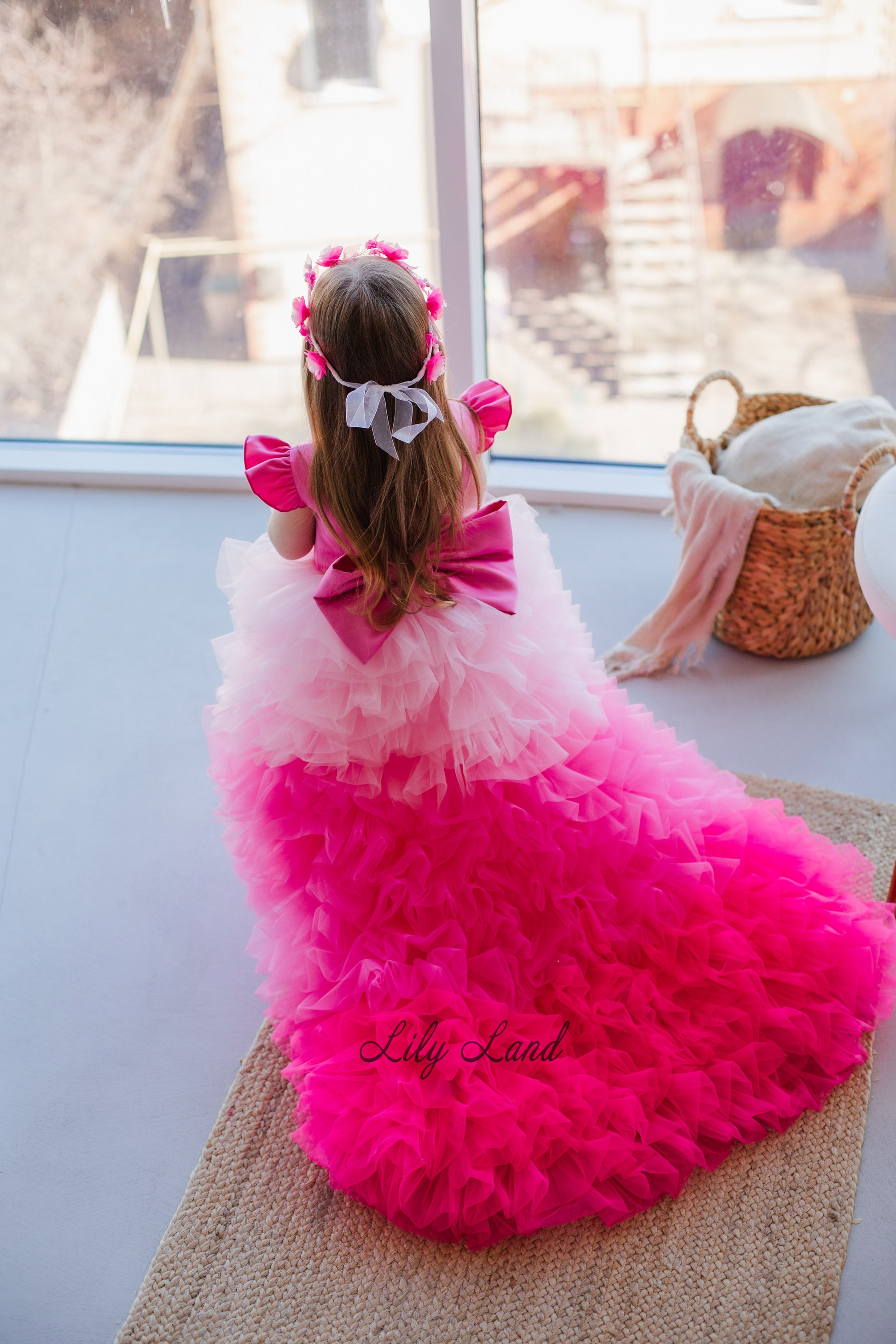 Rosa Girl Dress in Hot Pink Ombre with Long Train