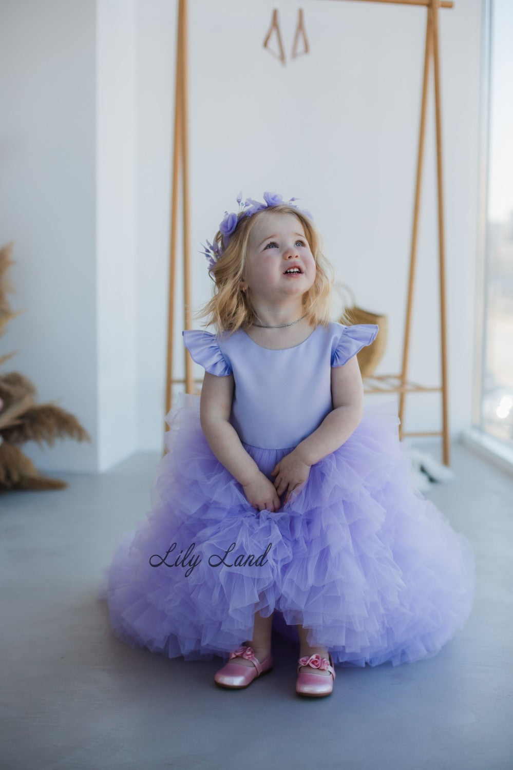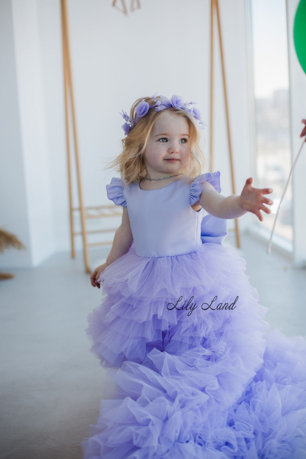Presenting the Rosa girl's dress – a whimsical creation crafted for your little ones to exude joy. This dress is a fantasy fulfilled for budding fashion enthusiasts. The Rosa dress highlights a charming lavender shade, embellished with an adorable skirt, cute puff sleeves, and a trailing train. Whether it's for her birthday, a special occasion, prom, wedding, a photoshoot, or as an adorable flower girl dress, the Rosa dress is the ideal selection for your young princess.