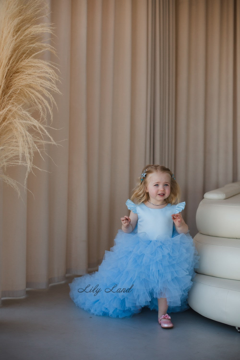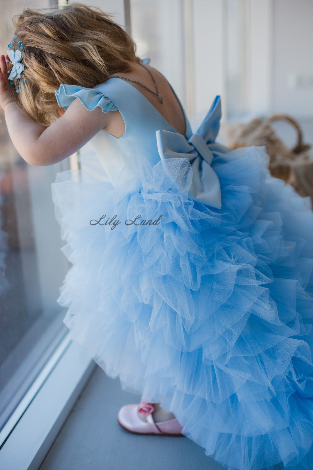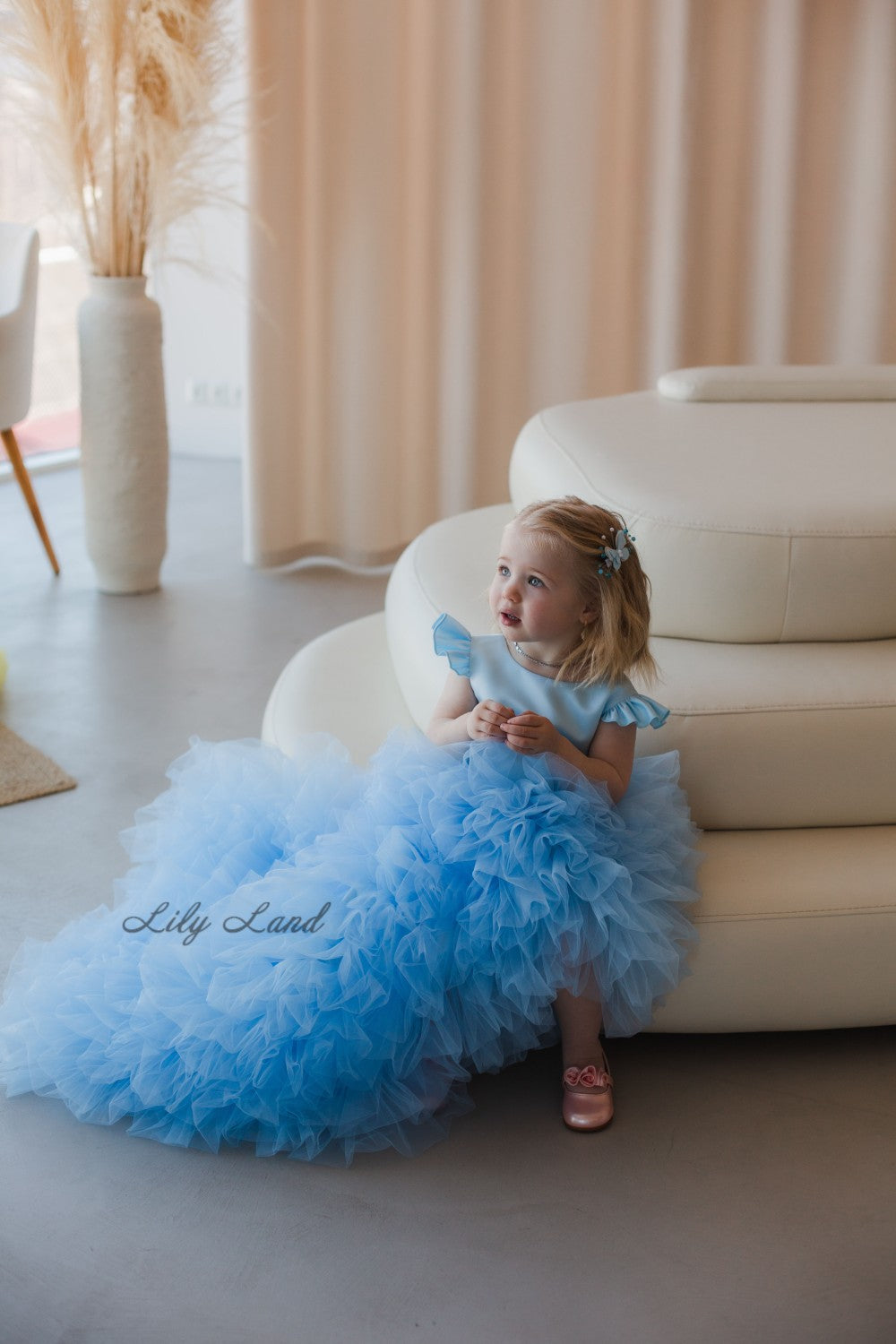 Step into a realm of wonder with the Rosa girl's dress – a whimsical ensemble designed to fill your child's world with sheer delight. This enchanting dress, now available in serene sky blue, showcases a delightful skirt, charming sleeves, and an elegantly flowing train. Whether it's a birthday extravaganza, a special occasion, a captivating prom night, a dreamy wedding, a cherished photoshoot, or a heartwarming flower girl appearance, the Rosa dress is the key to weaving moments that linger forever.