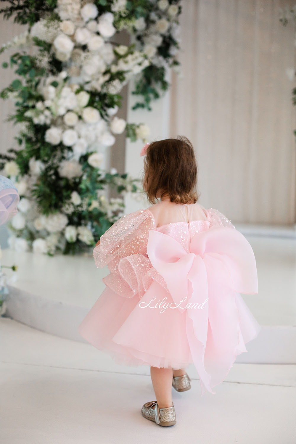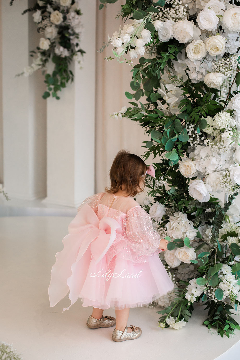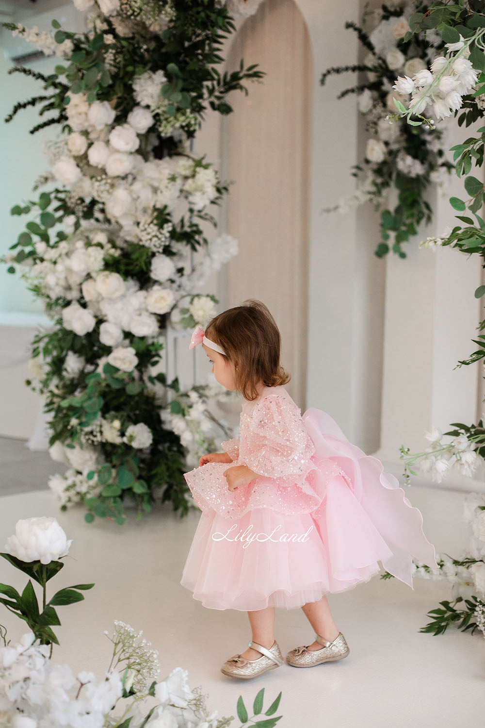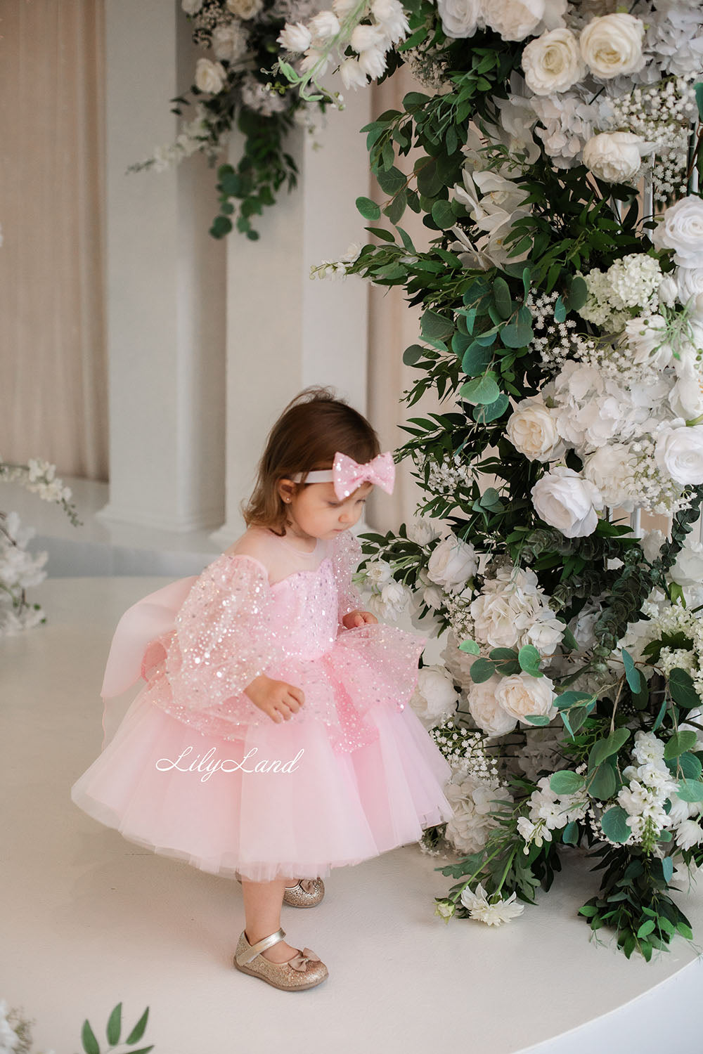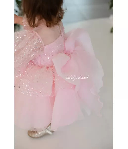 Wendy dress features a light, airy organza skirt with a charming peplum for added elegance. The voluminous lantern sleeves in crystal organza add a magical touch, while a large organza bow at the back completes the enchanting look. It is perfect for Christmas parties, birthdays, Valentine's Day events, prom nights, weddings (as a flower girl or junior bridesmaid), photoshoots, and evening events. Designed to captivate with its timeless beauty, the Wendy dress comes in various sizes and customizable shades, ensuring a perfect fit.