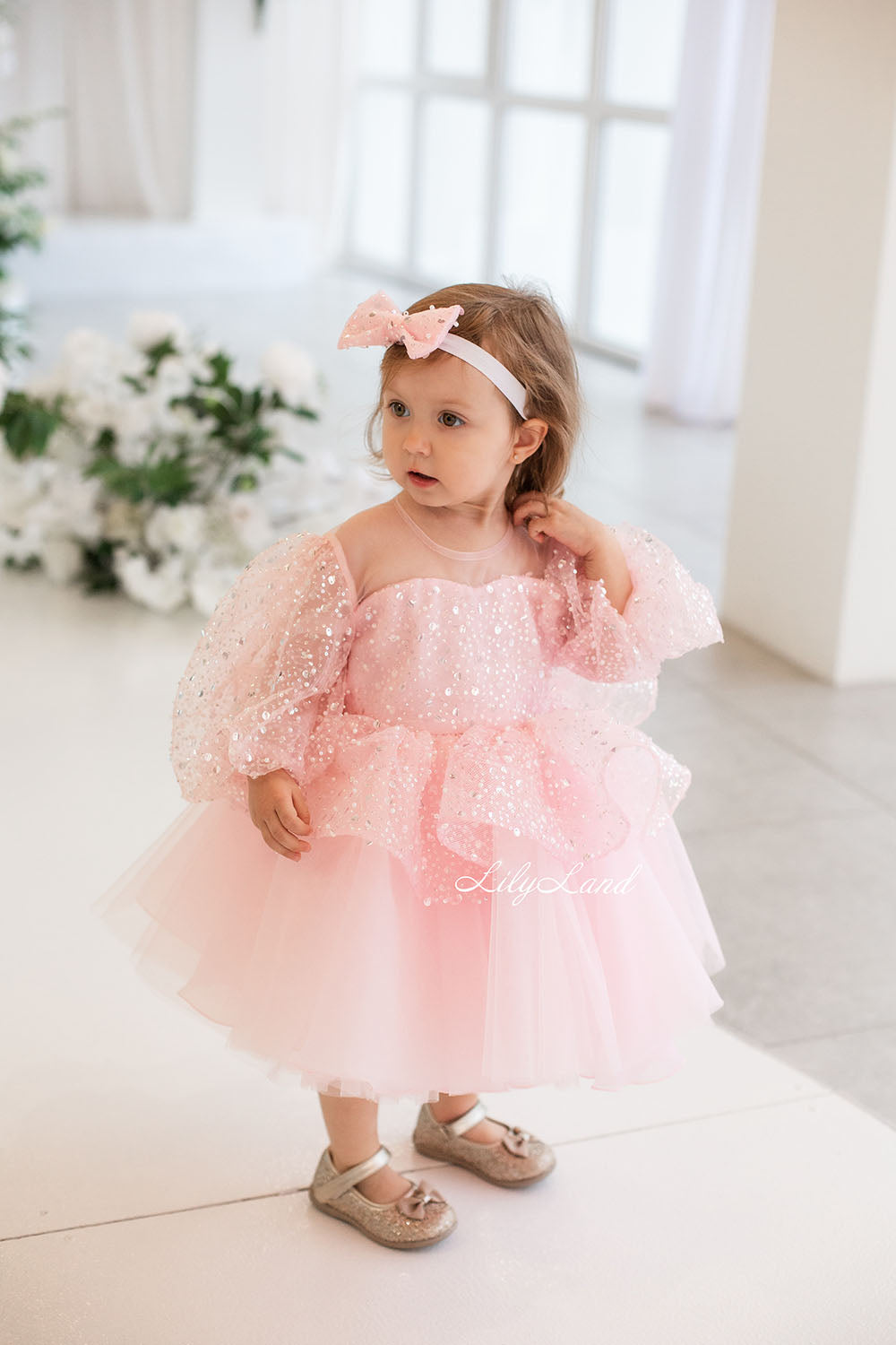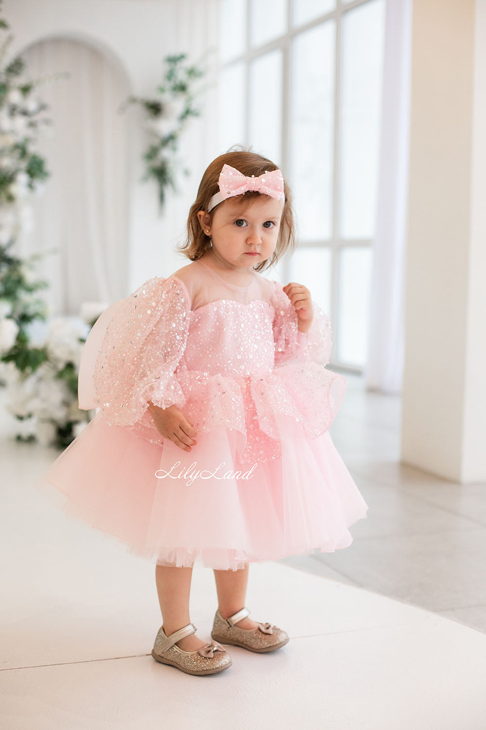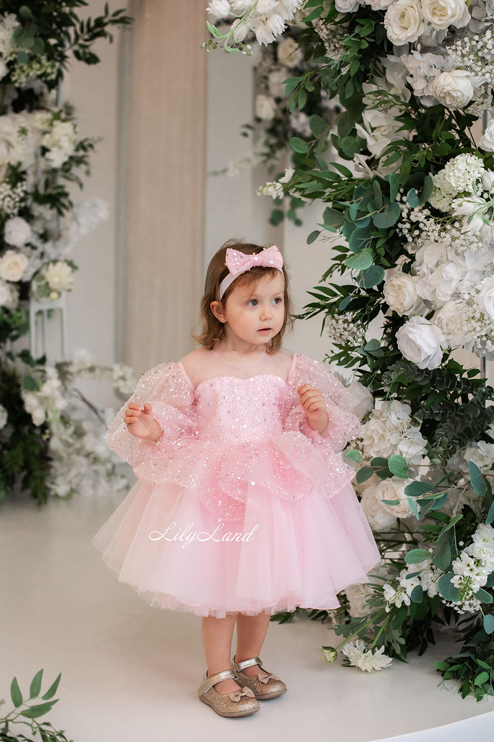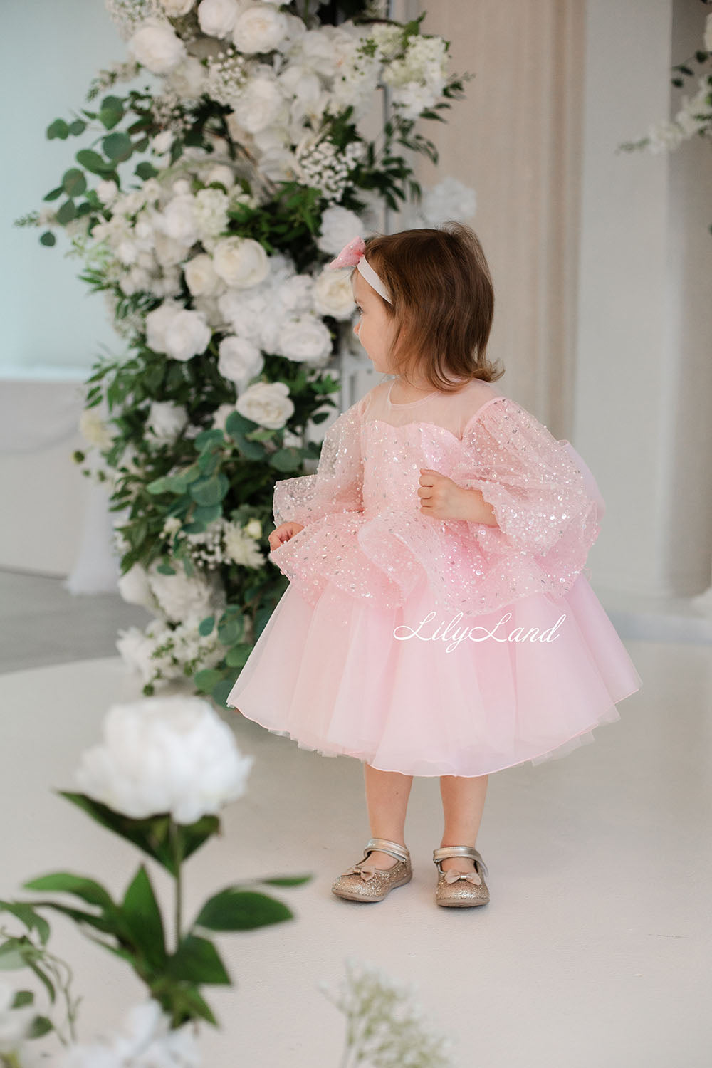 Wendy dress features a light, airy organza skirt with a charming peplum for added elegance. The voluminous lantern sleeves in crystal organza add a magical touch, while a large organza bow at the back completes the enchanting look. It is perfect for Christmas parties, birthdays, Valentine's Day events, prom nights, weddings (as a flower girl or junior bridesmaid), photoshoots, and evening events. Designed to captivate with its timeless beauty, the Wendy dress comes in various sizes and customizable shades, ensuring a perfect fit.